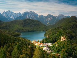 Bawaria, Niemcy, Alpy, Jezioro Alpsee, Zamek Hohenschwangau, Jezioro, Góry, Gmina Schwangau, Domy Na Pulpit |