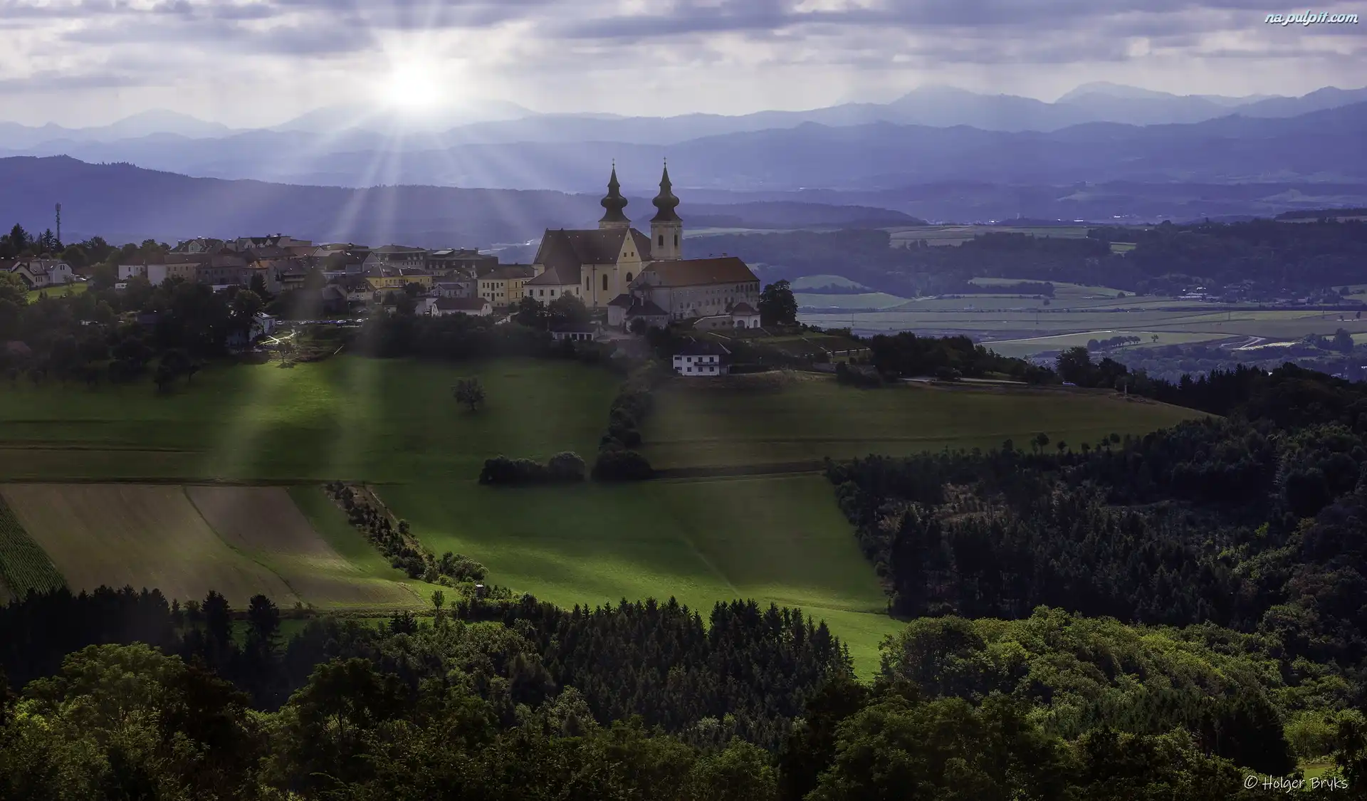 Kościół, Gmina Maria Taferl, Austria, Pola, Wzgórze, Lasy Na Pulpit