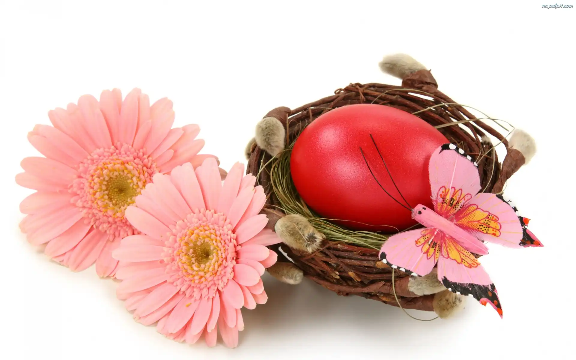 Motylek, Gniazdo, Gerbery, Jajko, Kolorowe, Wielkanoc, Różowe