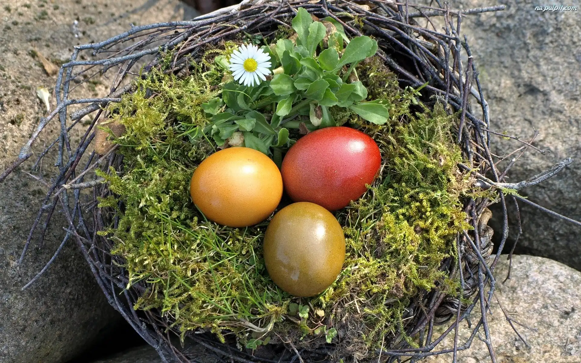 Gniazdo, Jajka, Malowane, Wielkanoc, Rumianek Na Pulpit