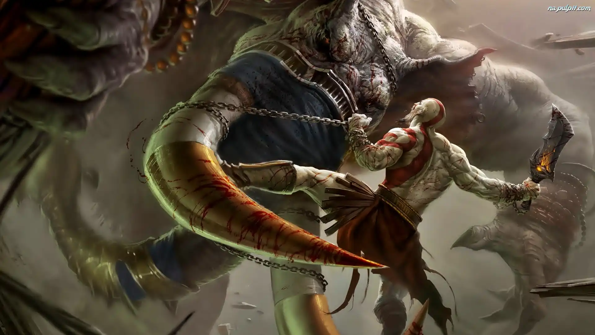 God Of War III, Spartanie Blizna, Kratos, God Of War, Twarz Oko, War, Of, God, 3 God Of War 3, Screen Walka, God Of War 3, Smok God Of War 3 God Of War 3 Miecze, Cratos, Dwa