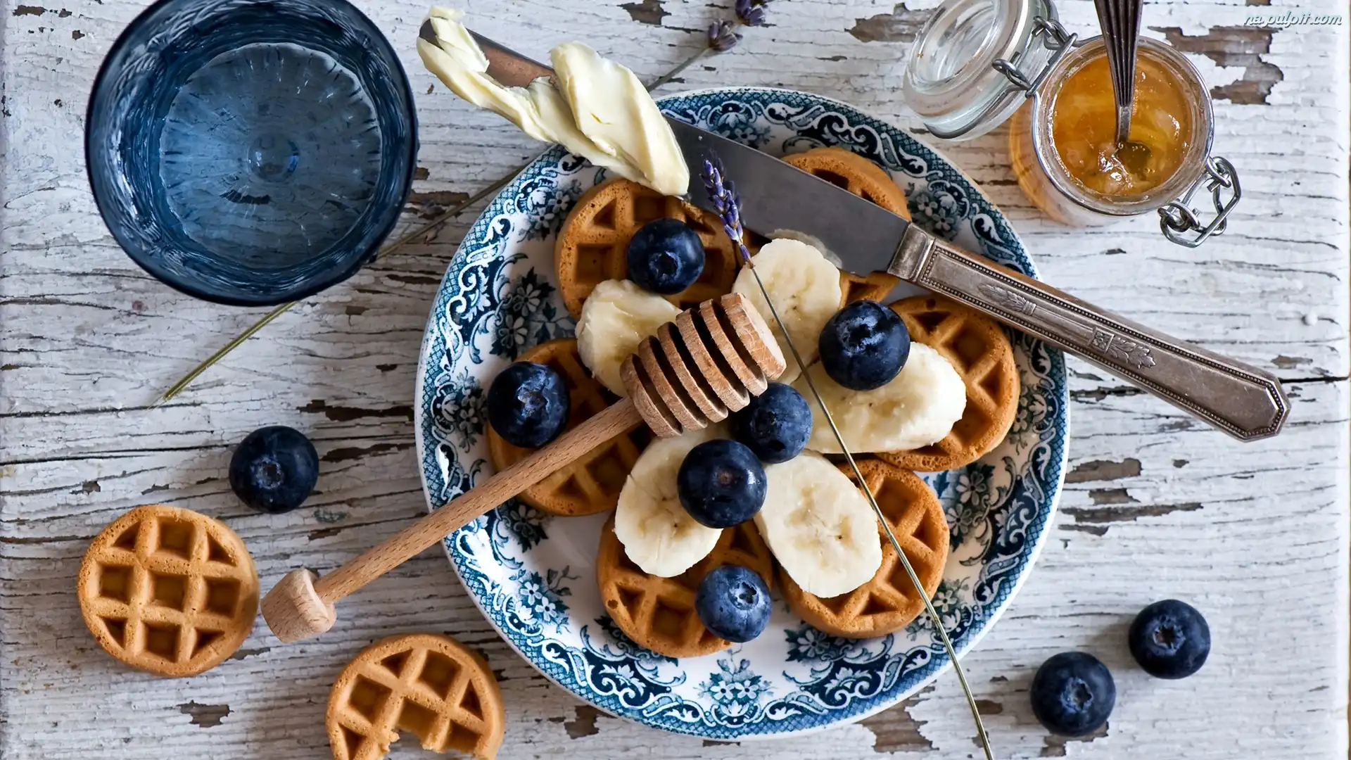 Gofry, Dżem, Nóż, Banany, Talerzyk, Jagody Na Pulpit