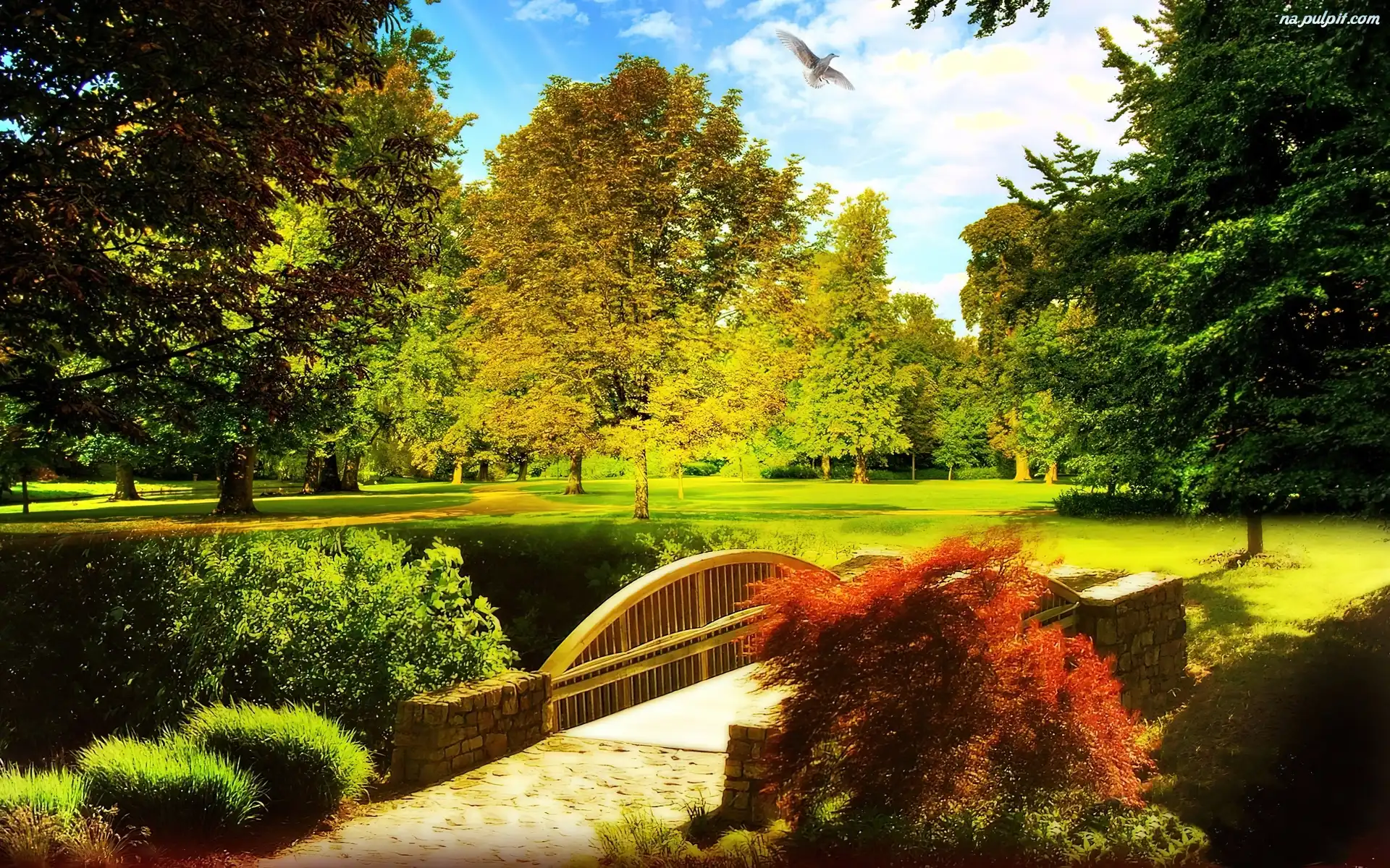 Gołąb, Mostek, Park, Lecący Na Pulpit