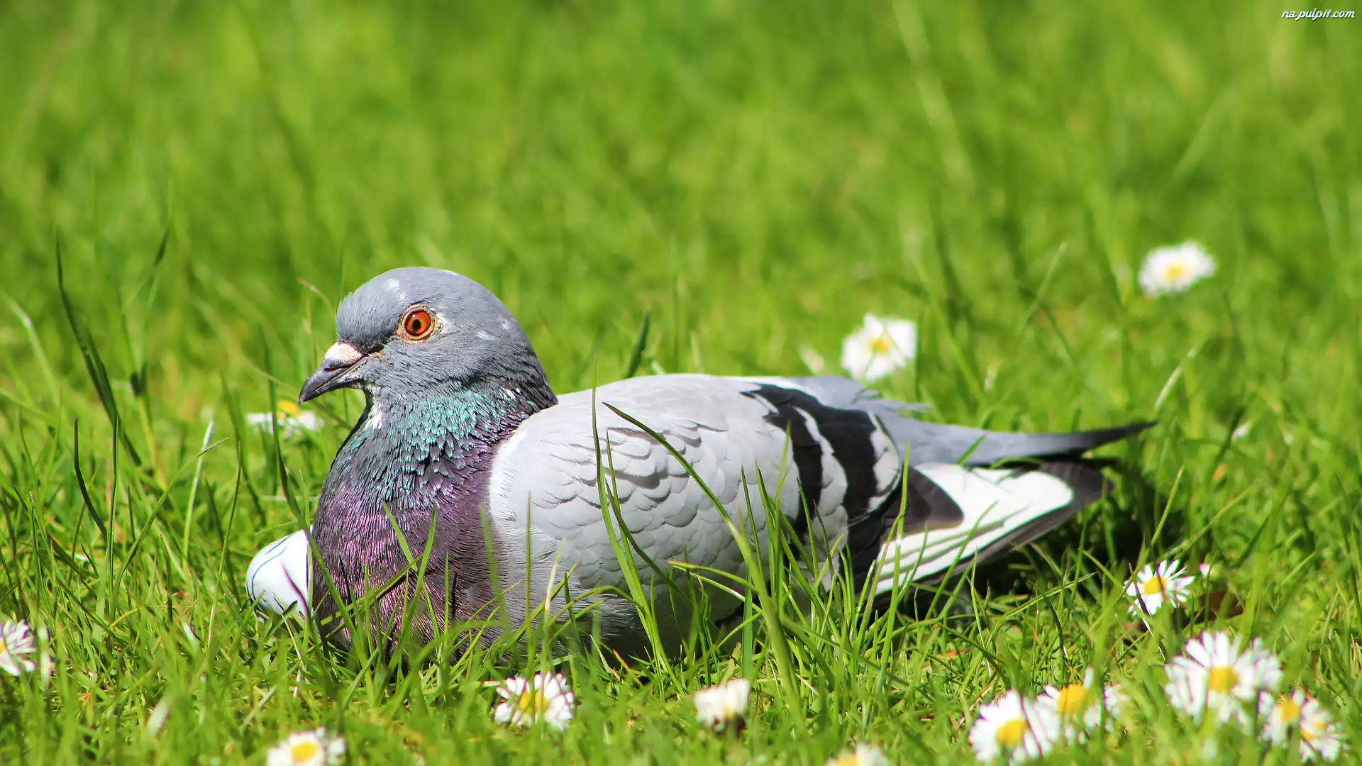 Zbliżenie, Gołąb, Trawa Na Pulpit