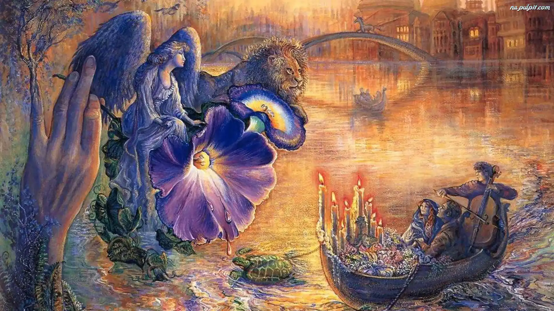 Gondole, Lew, Anioł, Kobieta, Woda Na Pulpit