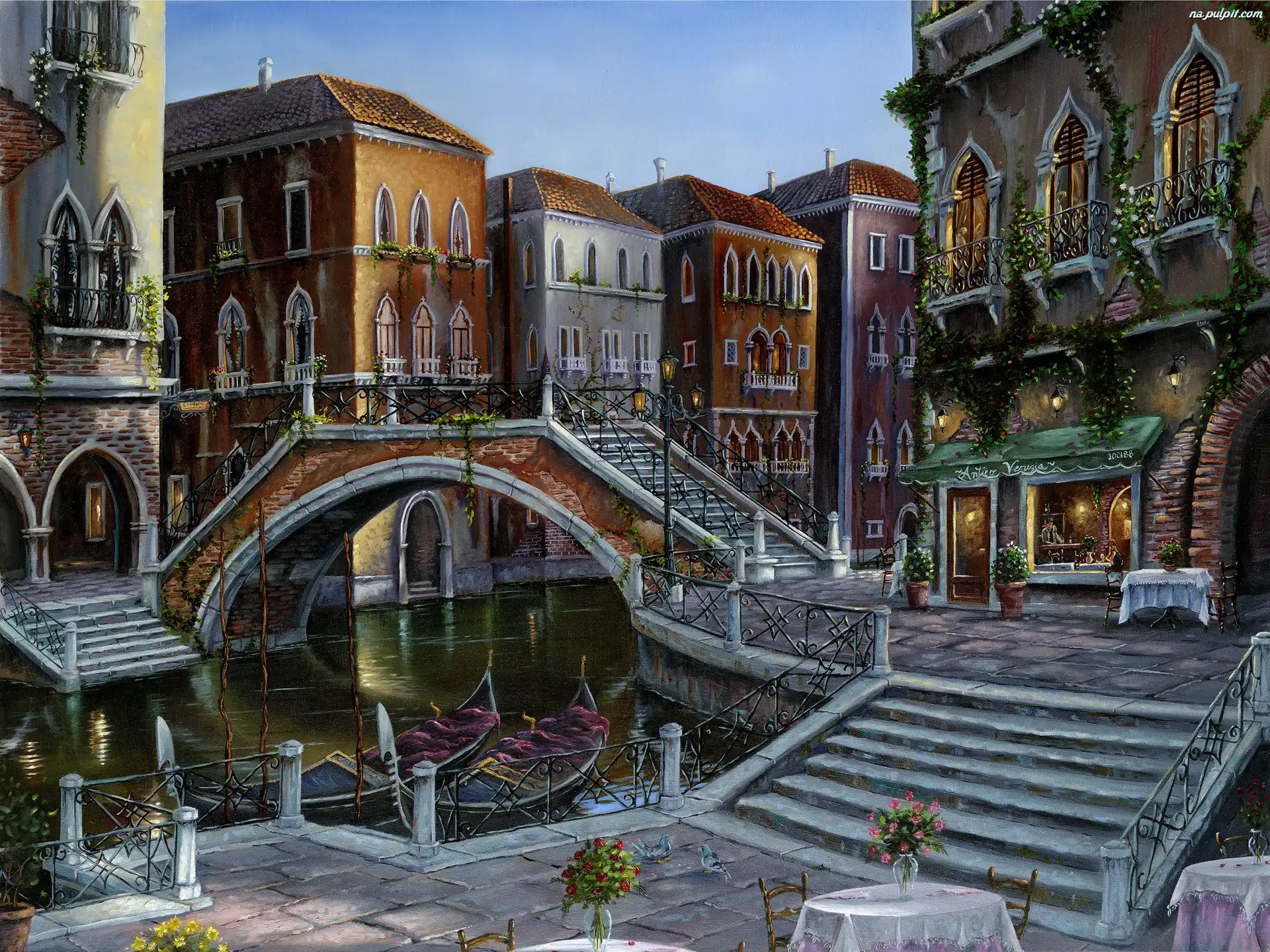 Chata, Opuszczona, Wiejska Hradczany, Most, Praga, Karola Domki, Brukowiec, Most, Rzeka Kalifornia, Most Luis Royo, Indianie Noc, Wenecja, Gondole Drewniany Most Domek, Zakochani, Słońca, Zachód, Jezioro Bariera, Millau, Wiadukt, Francja, Pylony Dom, Wenecja, Włochy Wenecja, Gondole, Pomosty Budynki, Woda, Łódź Betonowe, Schody Obrazu, Książka, Dziewczynka, Reprodukcja