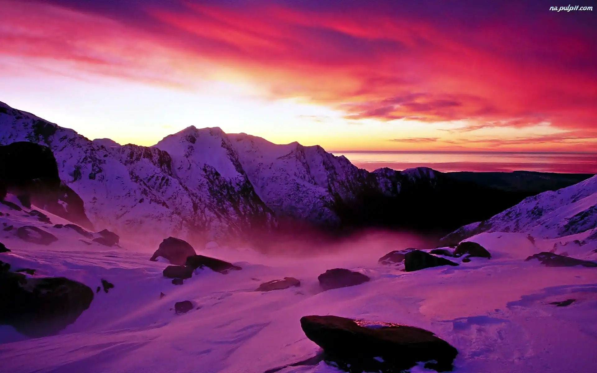 Gór, Zachód, Słońca, Śnieg, Szczyty, Chmury Na Pulpit