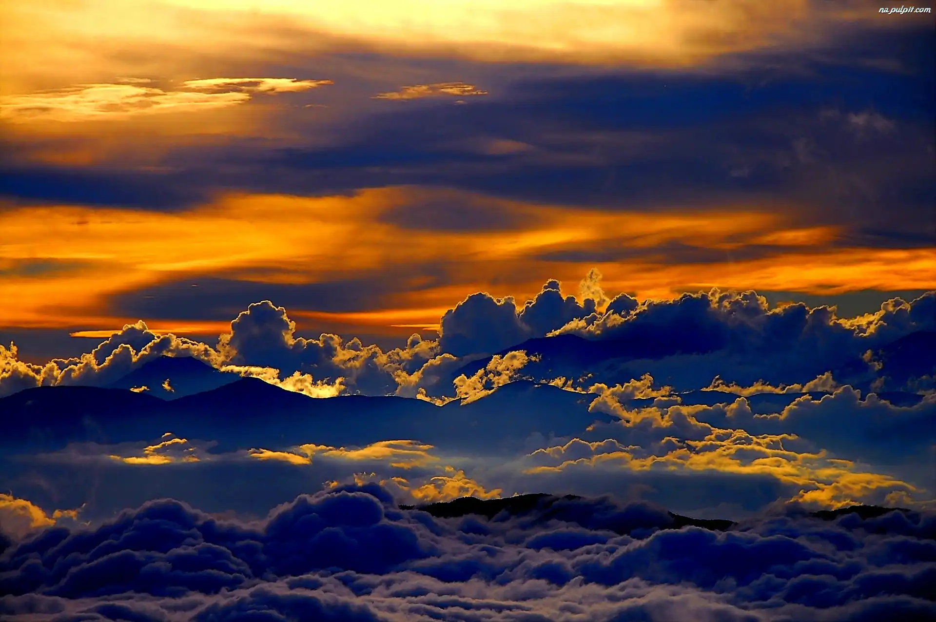 Gór, Chmury, Słońca, Zachód, Szczyty Na Pulpit