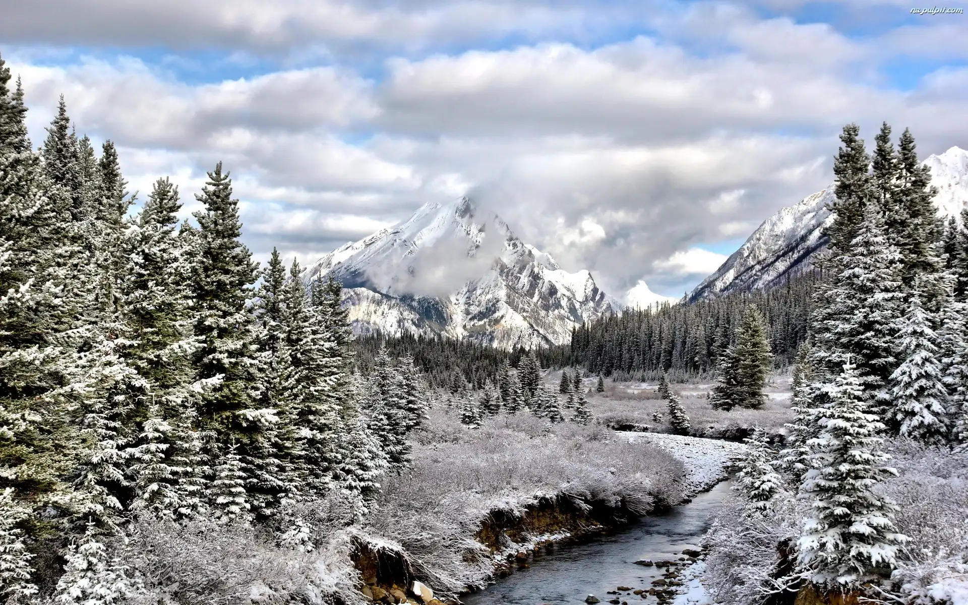 Kamienie, Góry, Jezioro Oszronione, Drzewa Zima, Drzewo Jezioro, Góry, Chmurki Plaża, Fale, Góry, Morze Góra Góra Zima, Rzeka Góra Góry, Krzewy palmy, Chmura, Góry, Niebo Góry, śnieg domki, Góry, dwa drzewa skały, Niebo