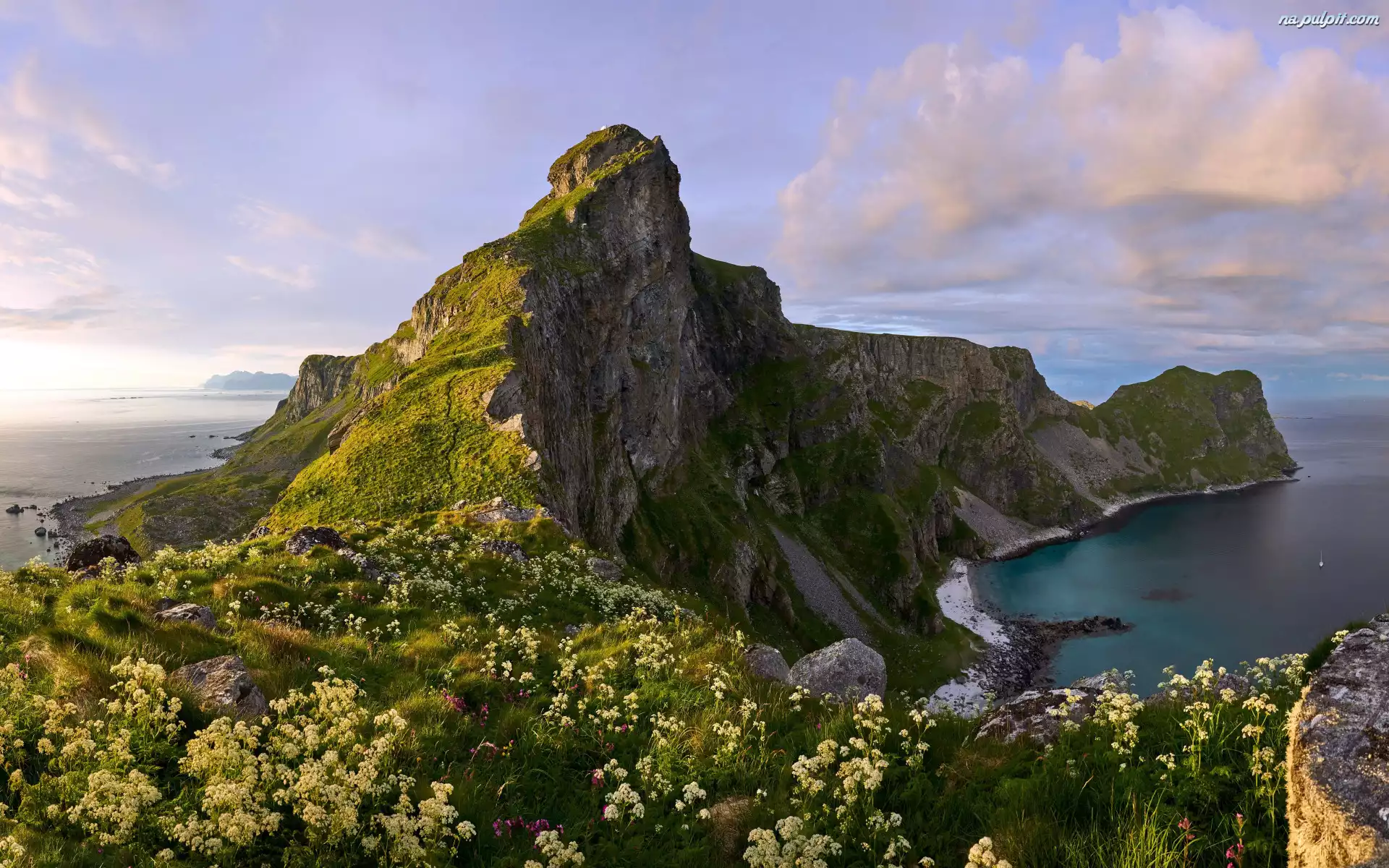 Kwiaty, Góra, Szczyt, Morze, Wybrzeże Na Pulpit