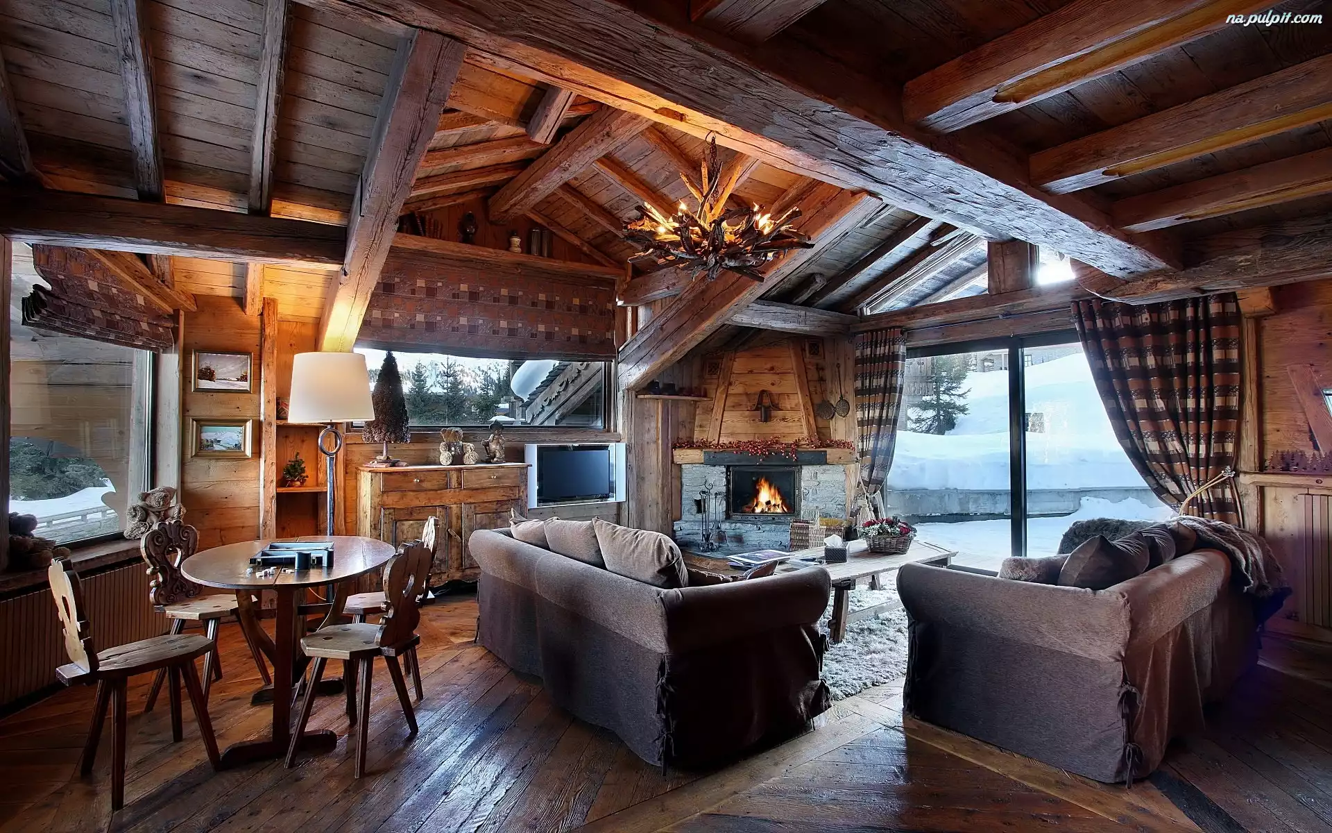 Góralski, Widok, Zima, Pokój, Dom, Okno