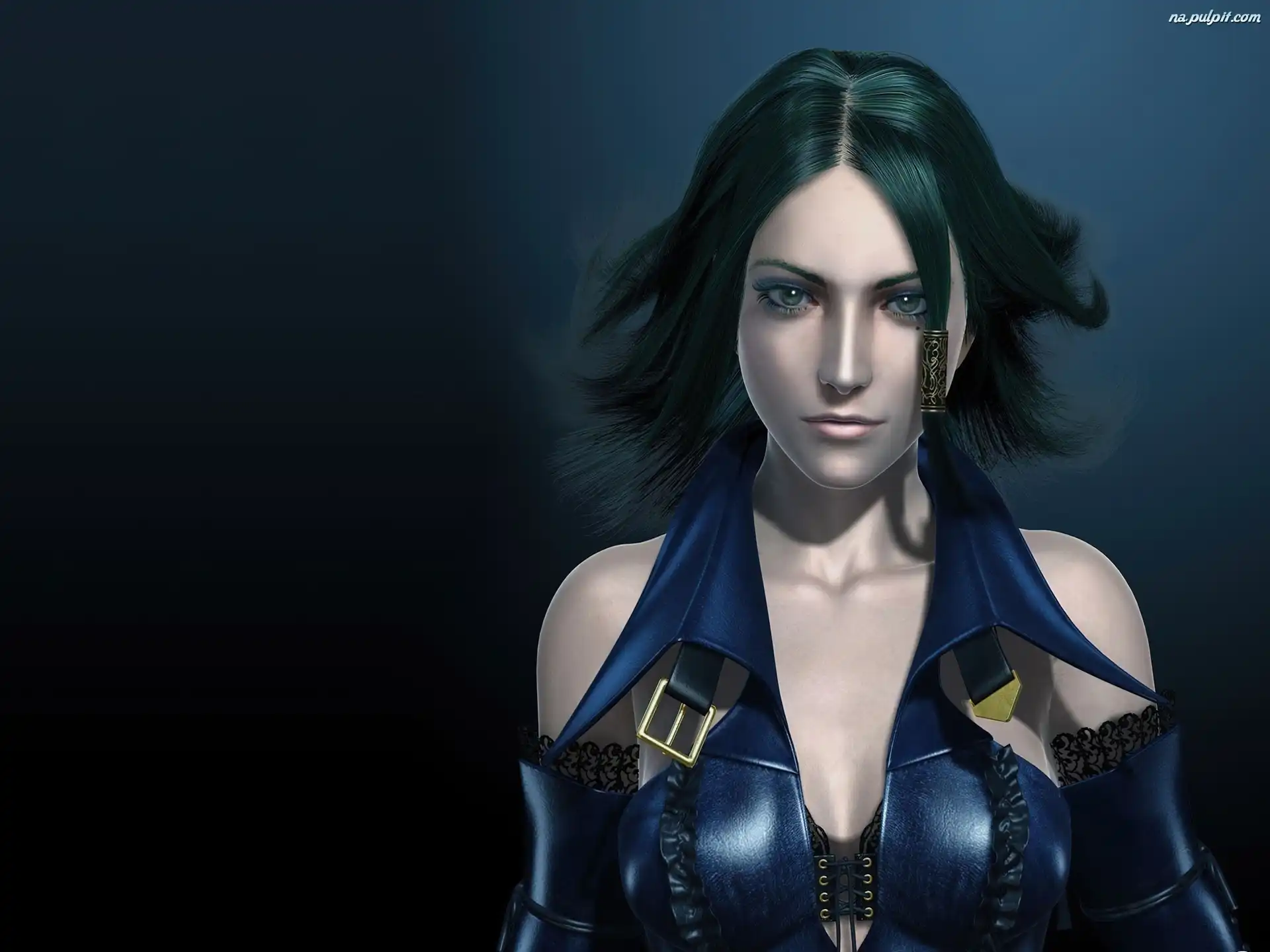 Dziewczyna, Spojrzenie, Granatowy, Gorsecik Na Pulpit