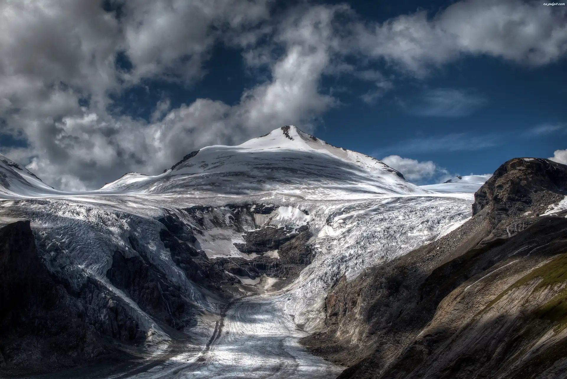 Górskie, Ośnieżone, Chmury, Zima, Szczyty