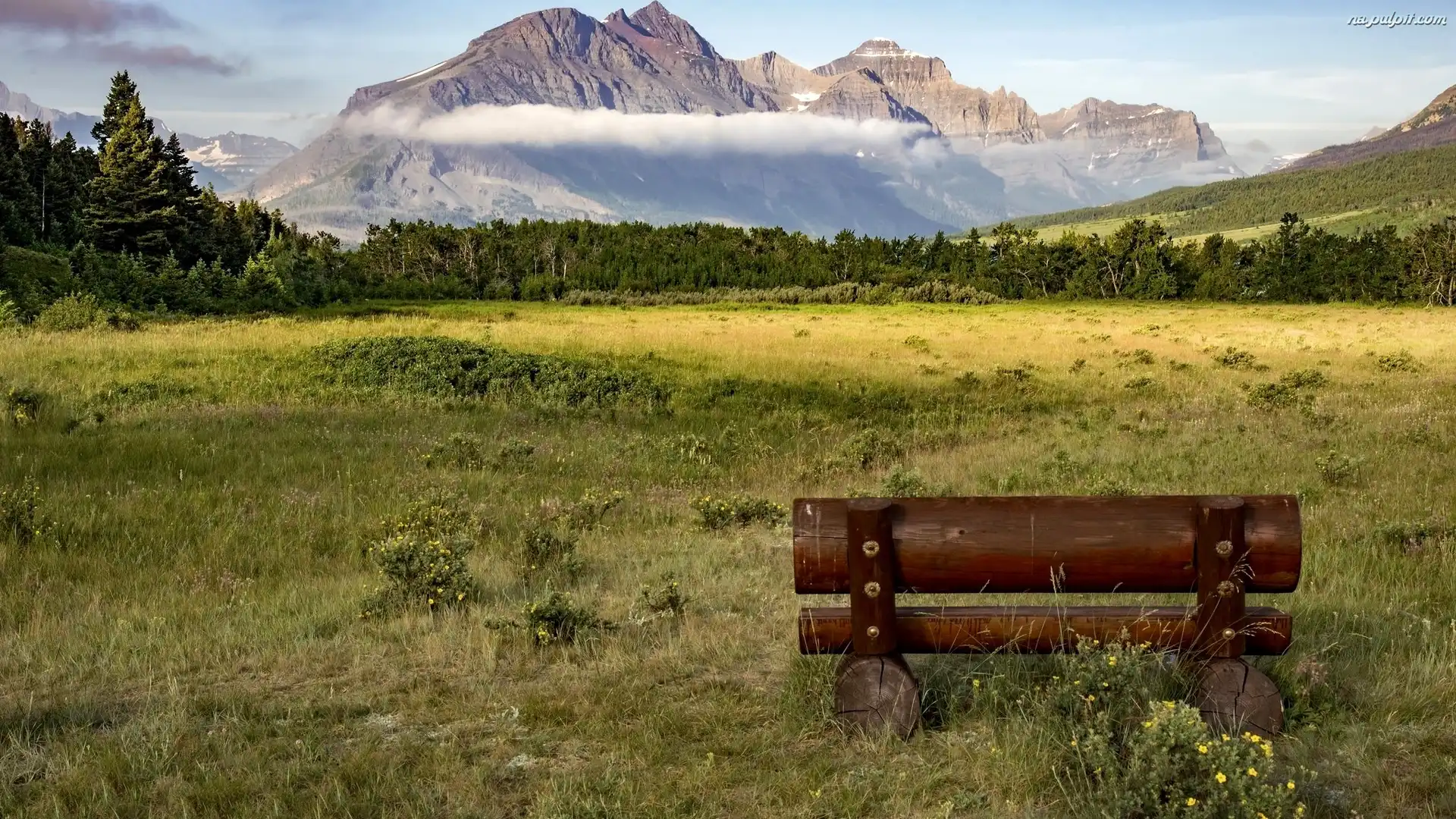 Ławka, Łąka, Góry, Drzewa Na Pulpit