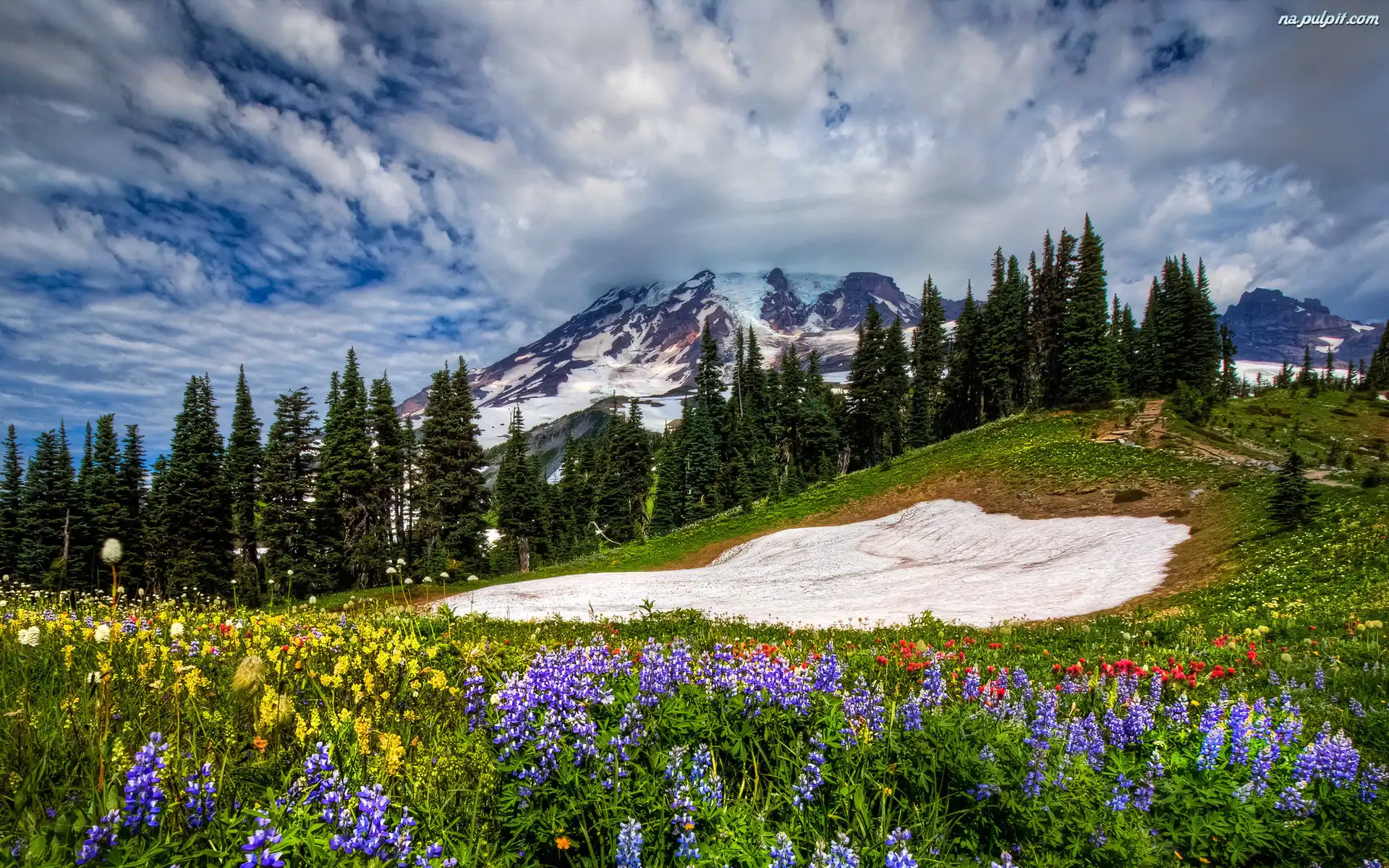 Góry, Kwiaty, Łąka, Drzewa Na Pulpit