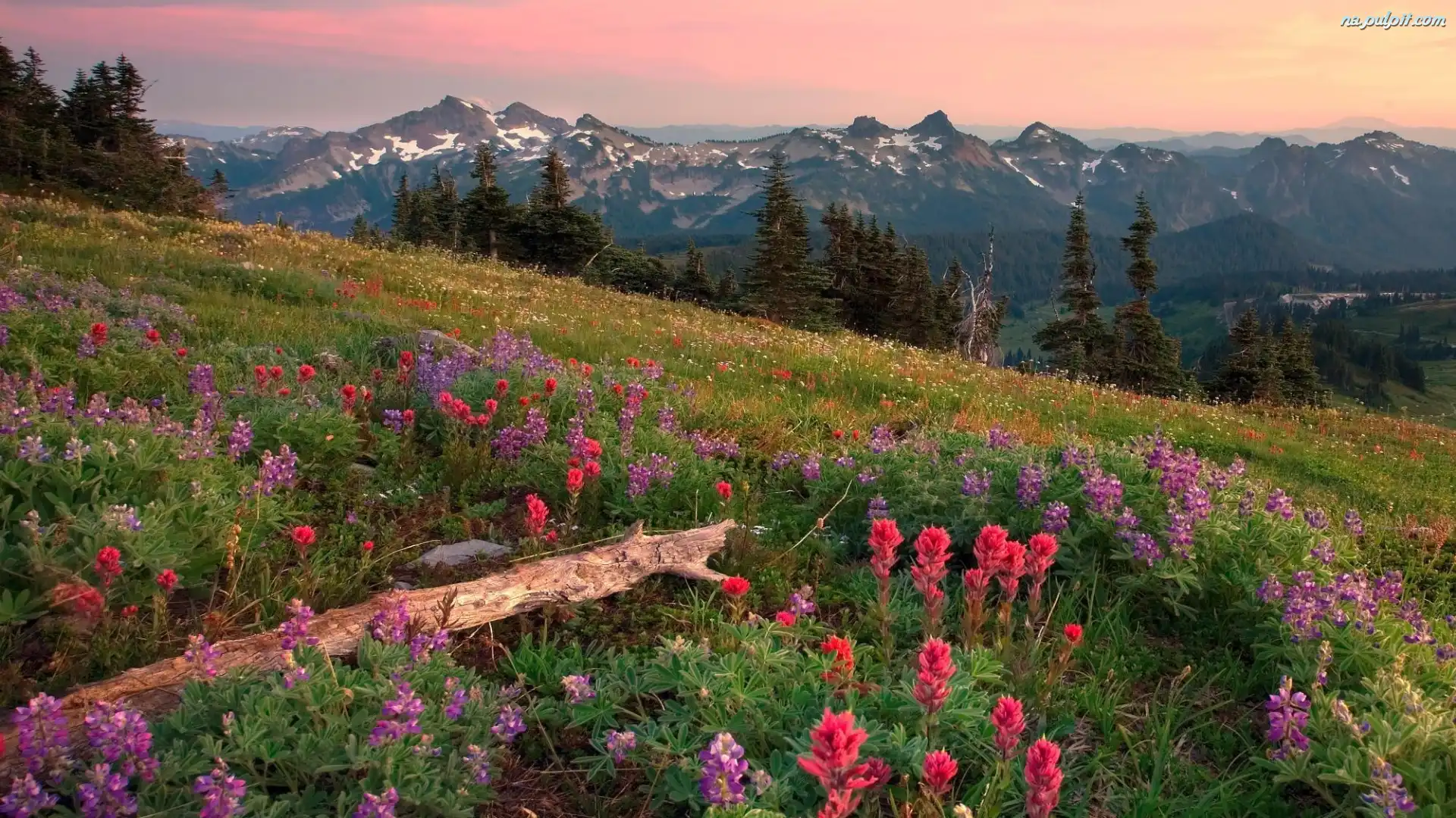 Góry, Kwiaty, Łąka, Drzewa Na Pulpit