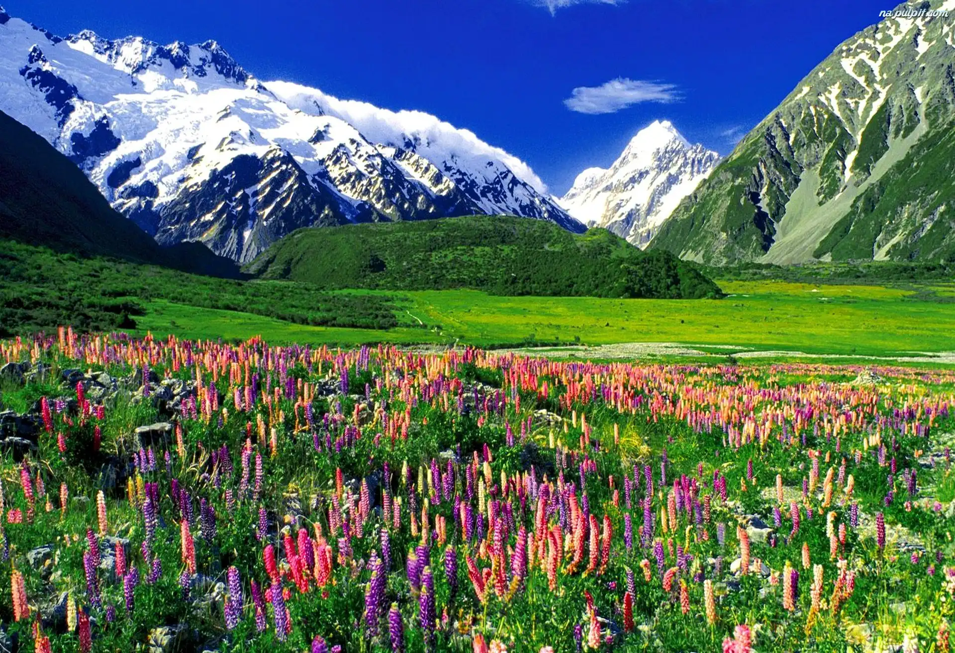 Góry, Kwiaty, Łąka, Ośnieżone Na Pulpit