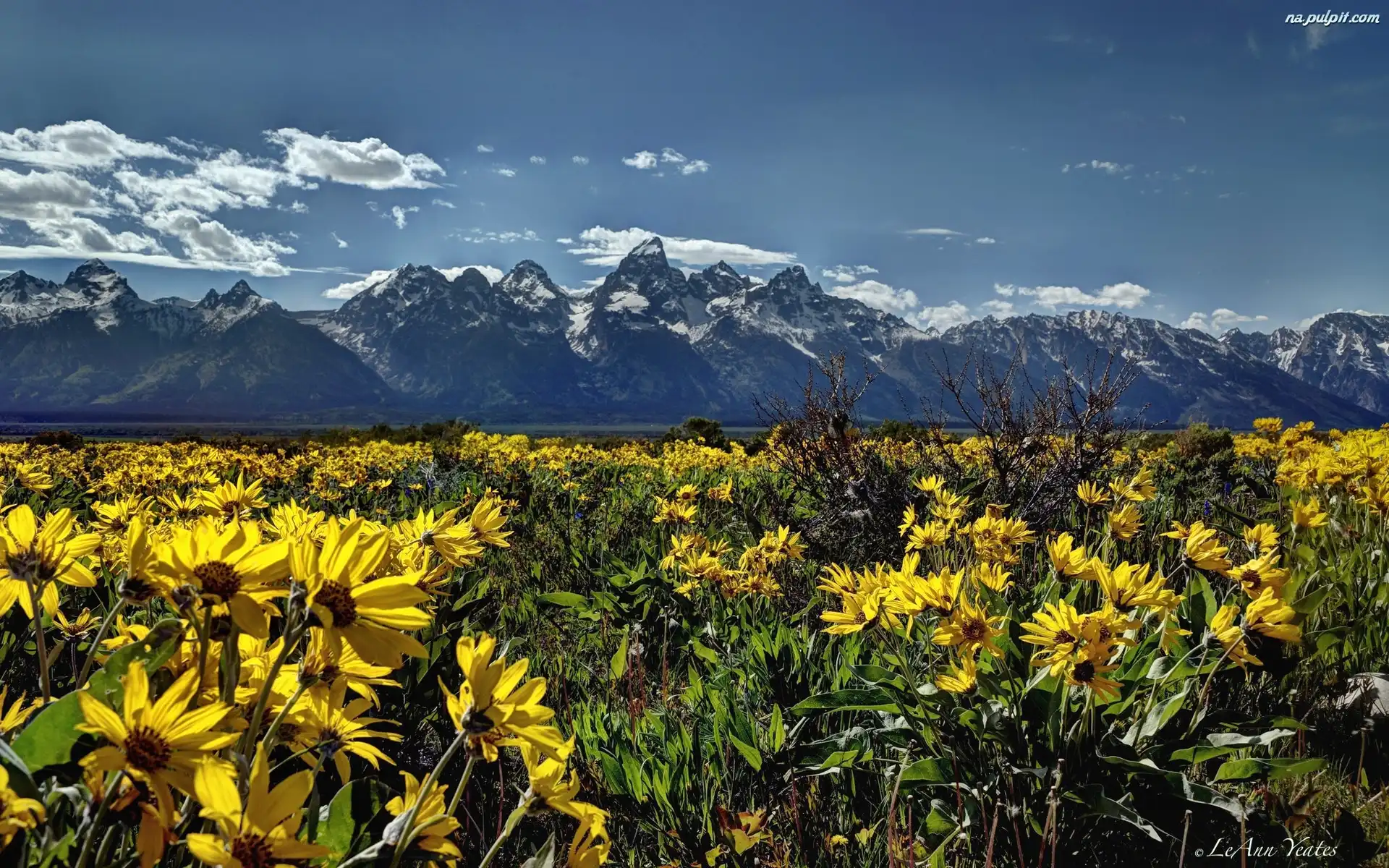 Stan Wyoming, Kwiaty, Łąka, Park Narodowy Grand Teton, Stany Zjednoczone, Góry Na Pulpit
