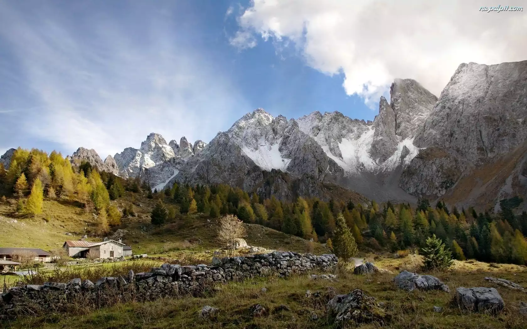 Chmury, Góry, Drzewa Na Pulpit