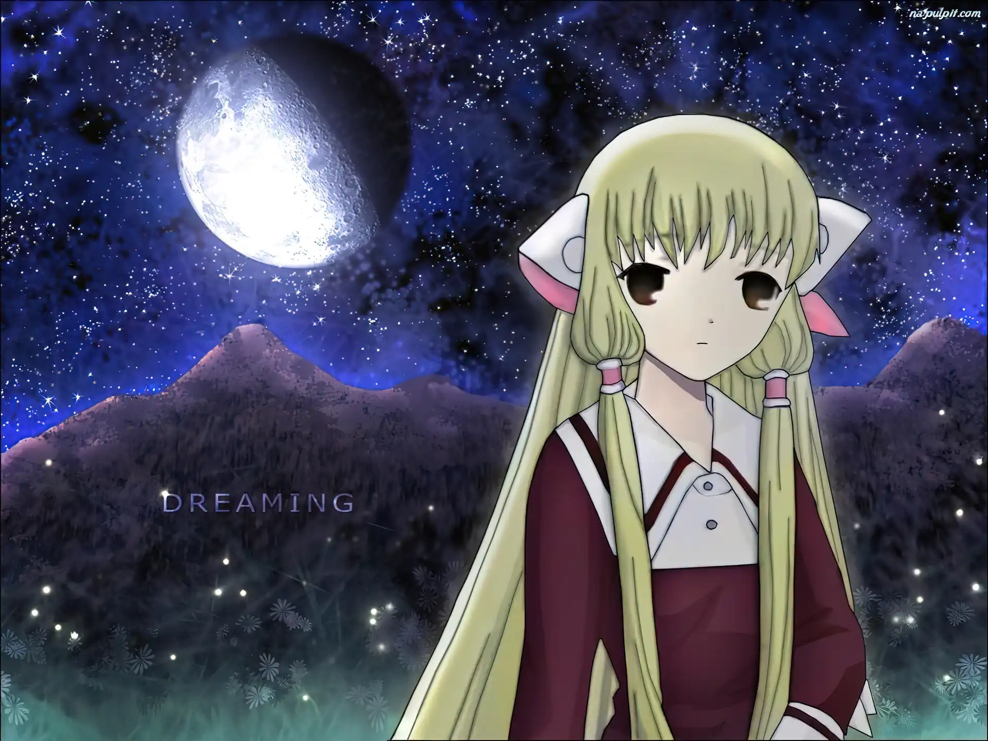 góry, dziewczyna, Chobits, księżyc Na Pulpit
