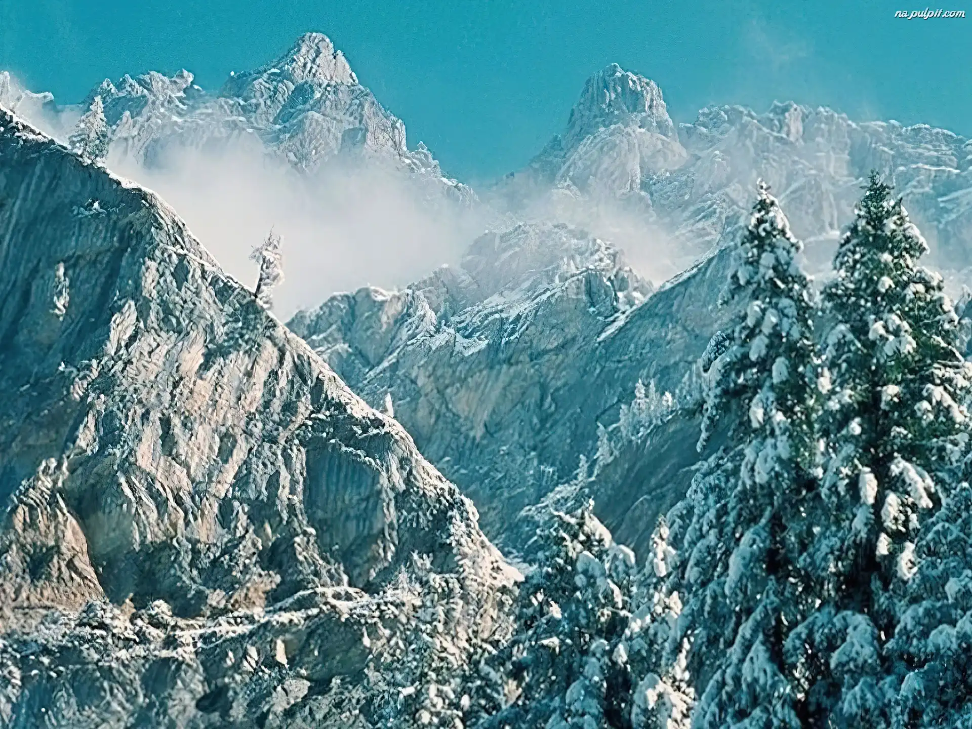 Kamienie, Góry, Jezioro Oszronione, Drzewa Zima, Drzewo Jezioro, Góry, Chmurki Plaża, Fale, Góry, Morze Góra Góra Zima, Rzeka Góra Góry, Krzewy palmy, Chmura, Góry, Niebo Góry, śnieg domki, Góry, dwa drzewa skały, Niebo
