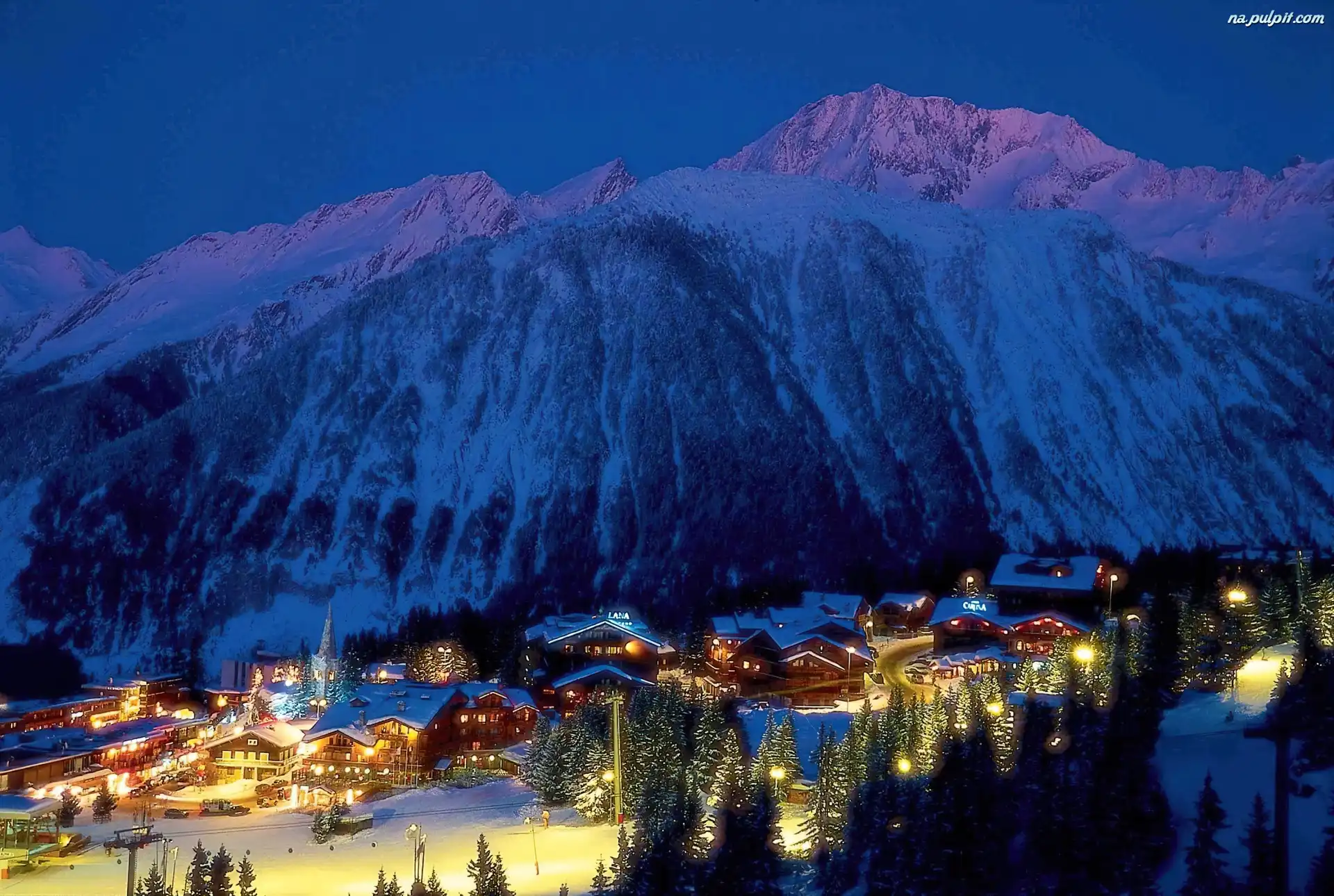 Góry, Narciarski, Kurort, Courchevel, Francja Na Pulpit
