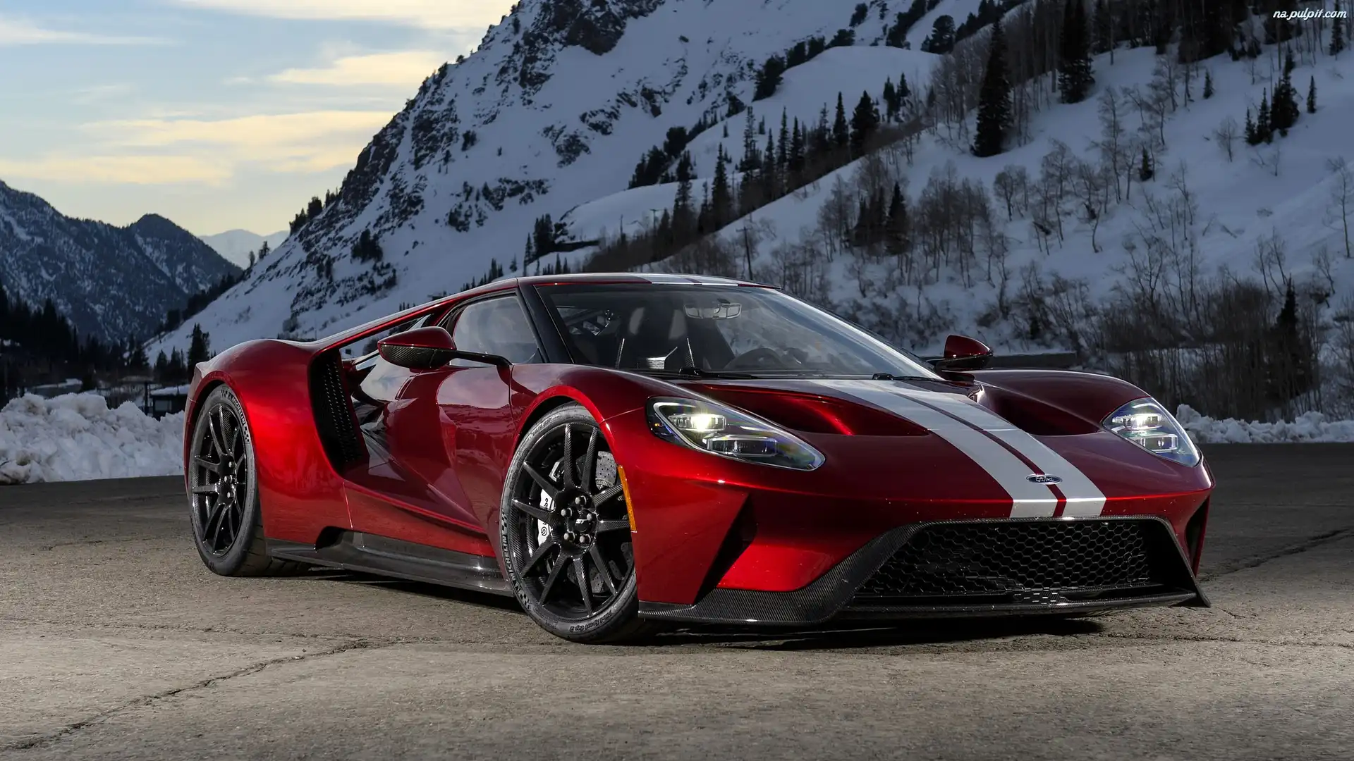 Góry, 2017, Ford GT, Czerwony, Ośnieżone