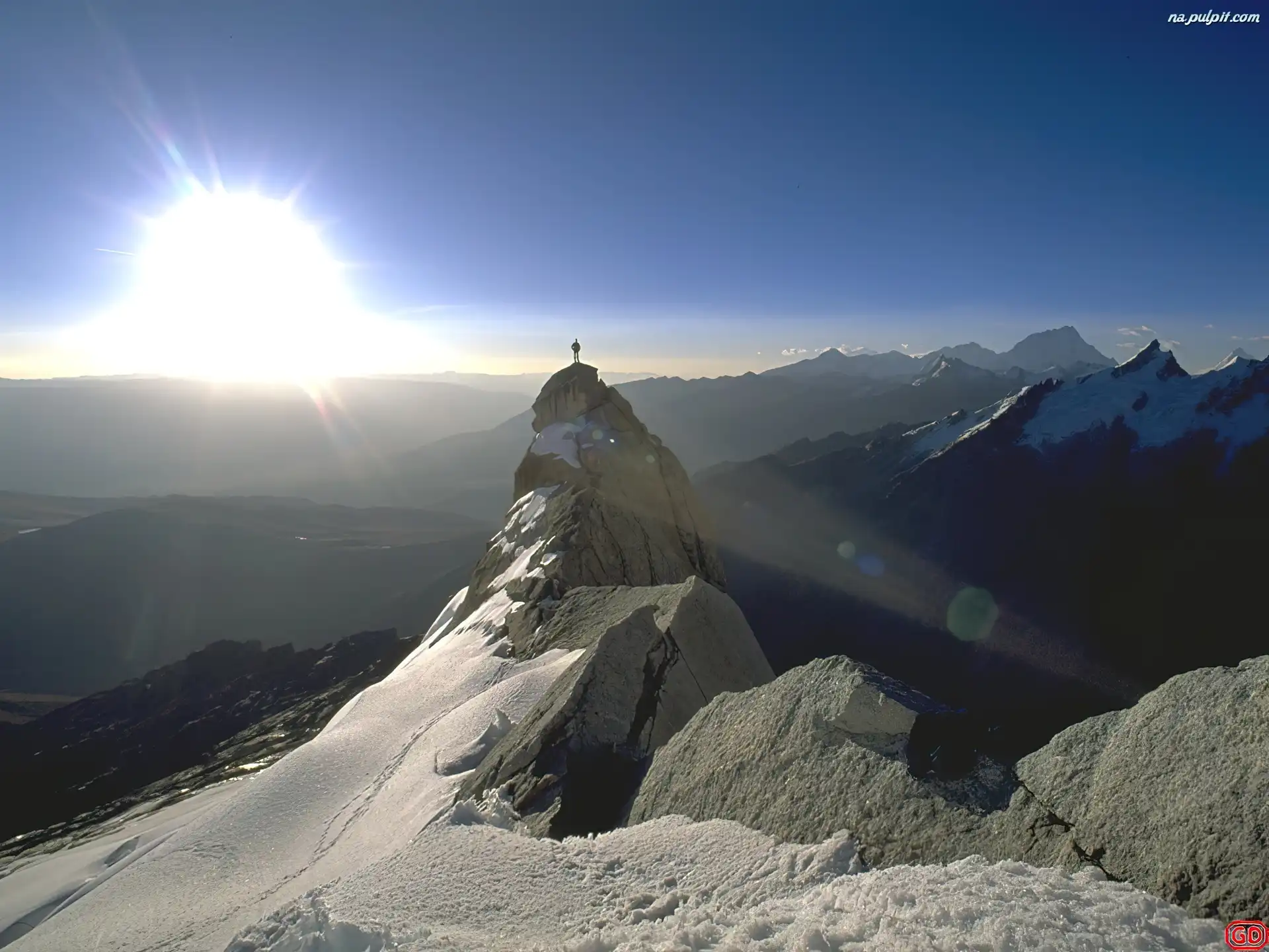 Człowiek, Góry, Słońce Na Pulpit