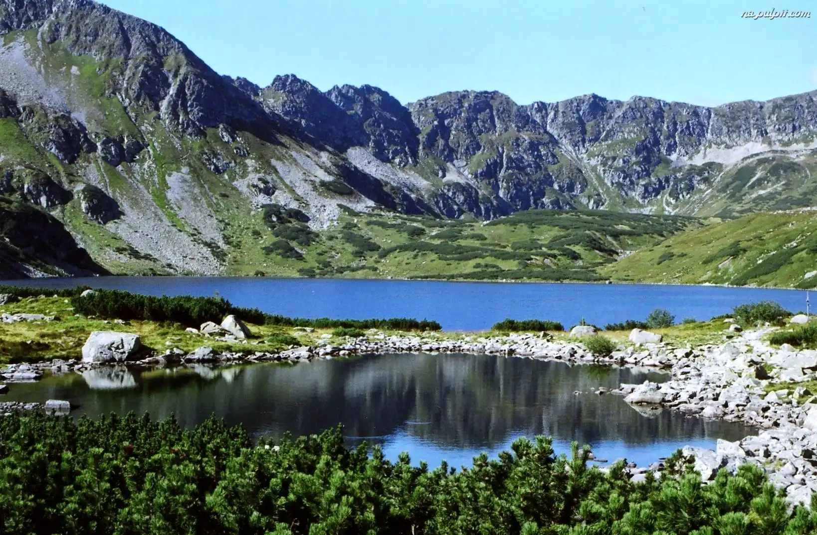 Kamienie, Góry, Jezioro Ławka, Jesień, Jezioro Polska, Morskie, Oko Jezioro, Góry, Chmurki Plaża, Fale, Góry, Morze Góra Góra Góra, Jeziora Góra Góry, Krzewy palmy, Chmura, Góry, Niebo Góry, śnieg domki, Góry, dwa drzewa skały, Niebo
