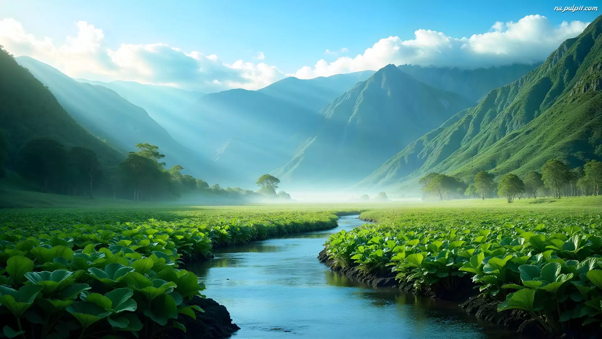 Rośliny, Góry, Dolina, AI, Rzeka Na Pulpit