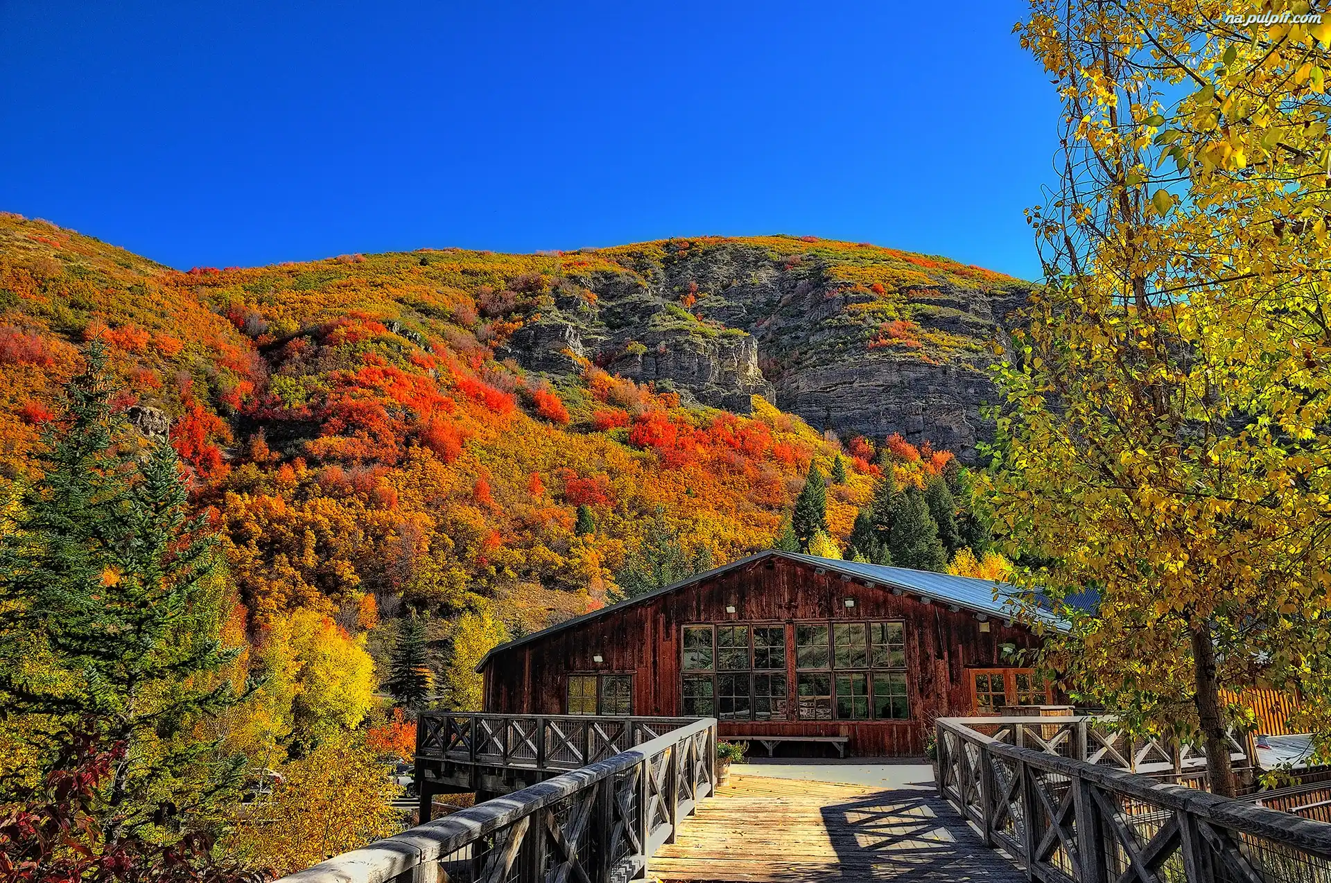 Dom, Góry, Drewniany, Most, Lasy, Jesień, Mostek Na Pulpit