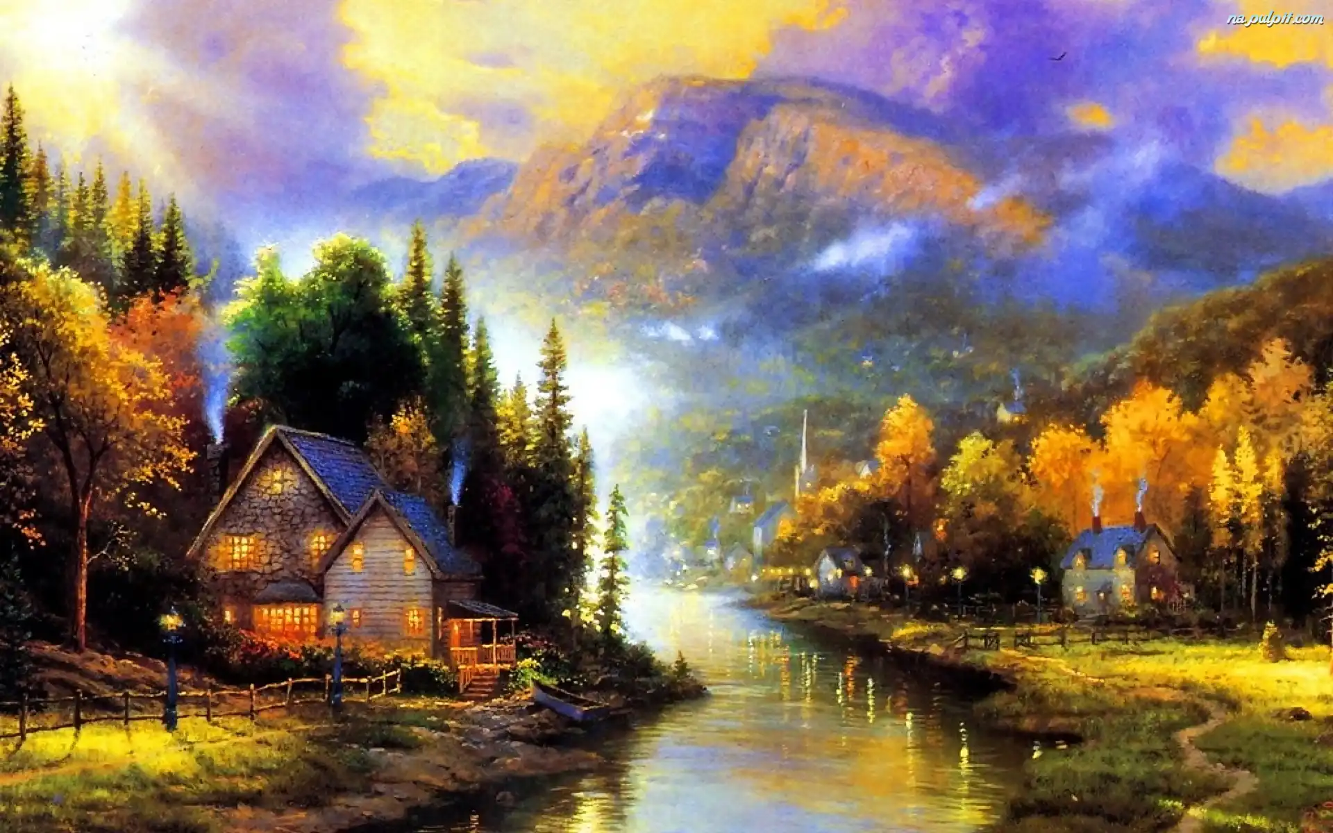 Góry, Rzeka, Dom, Las Na Pulpit