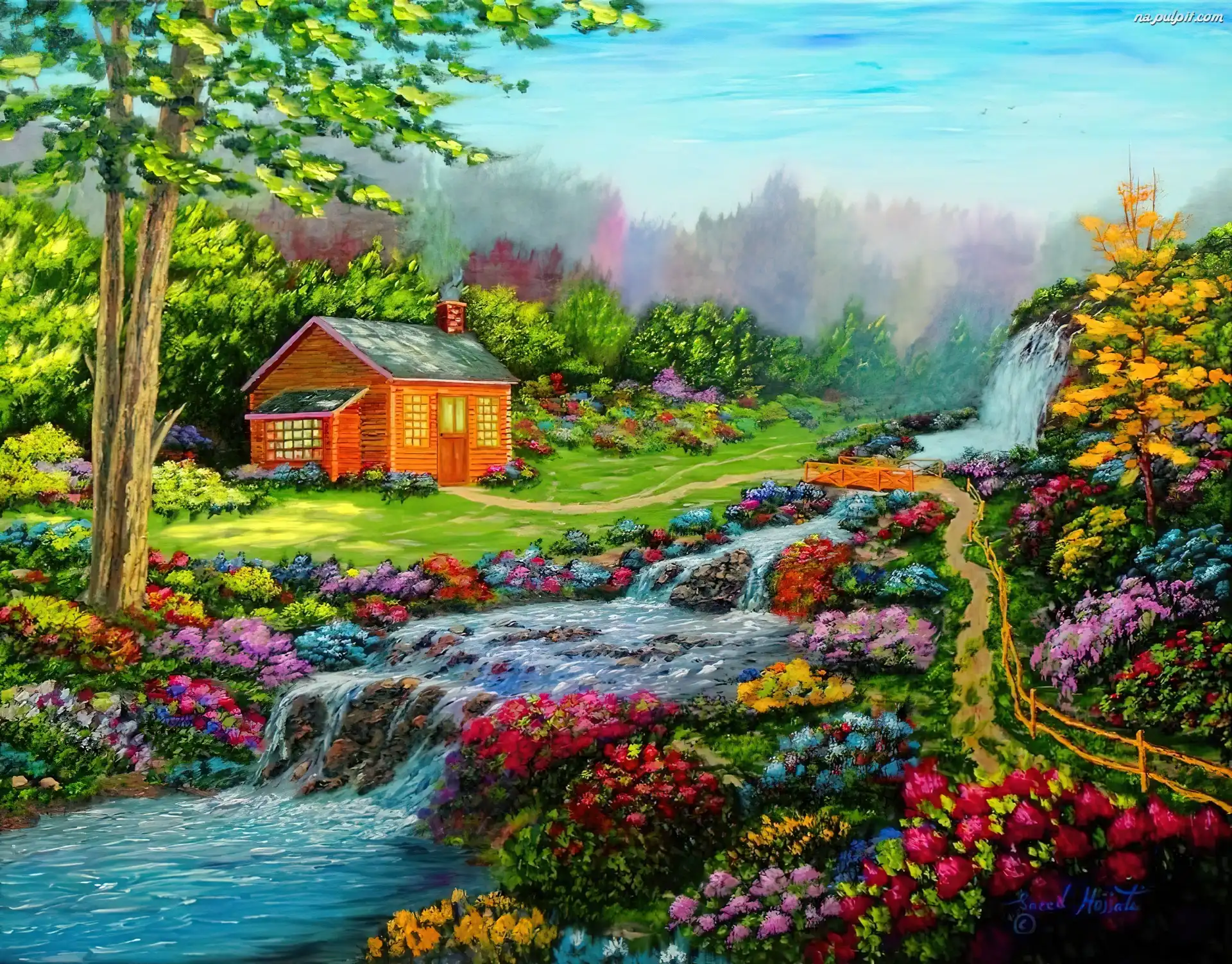 Góry, Rzeka, Domek, Kwiaty Na Pulpit