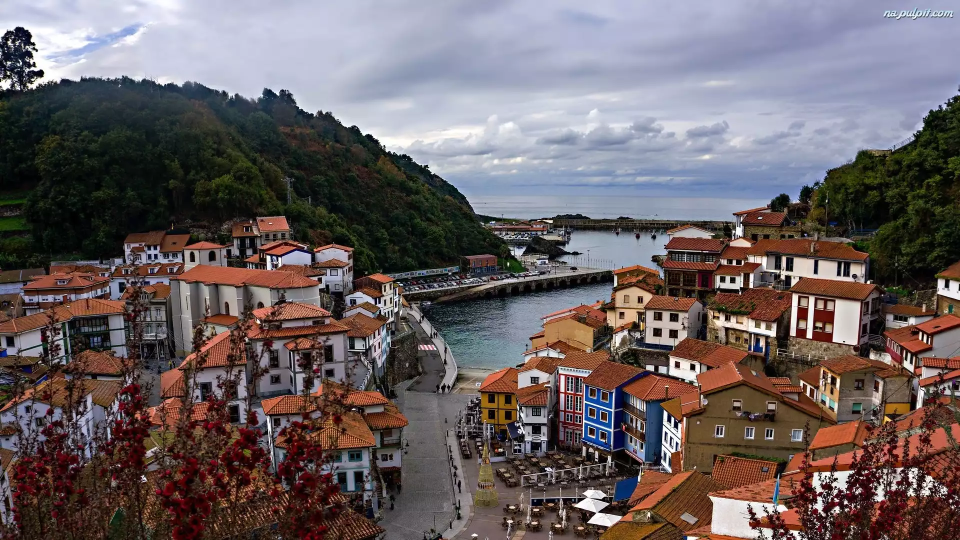 Cudillero, Góry, Domy, Hiszpania, Wioska Na Pulpit