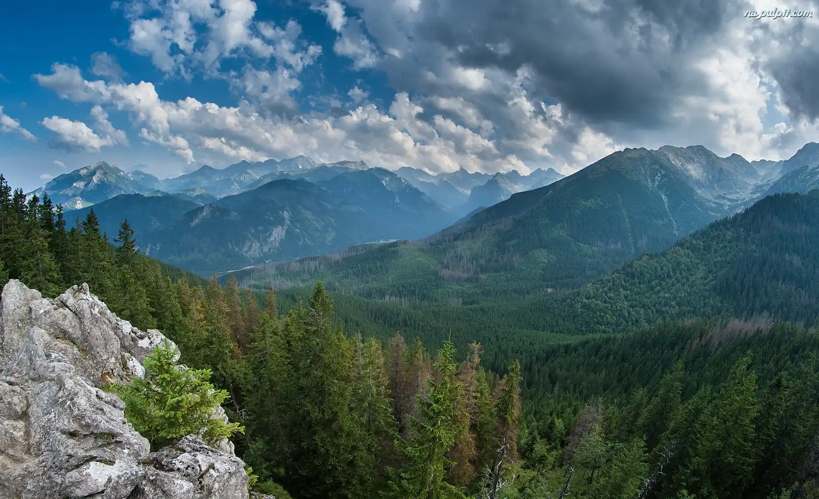 Drzewa, Góry, Chmury Na Pulpit