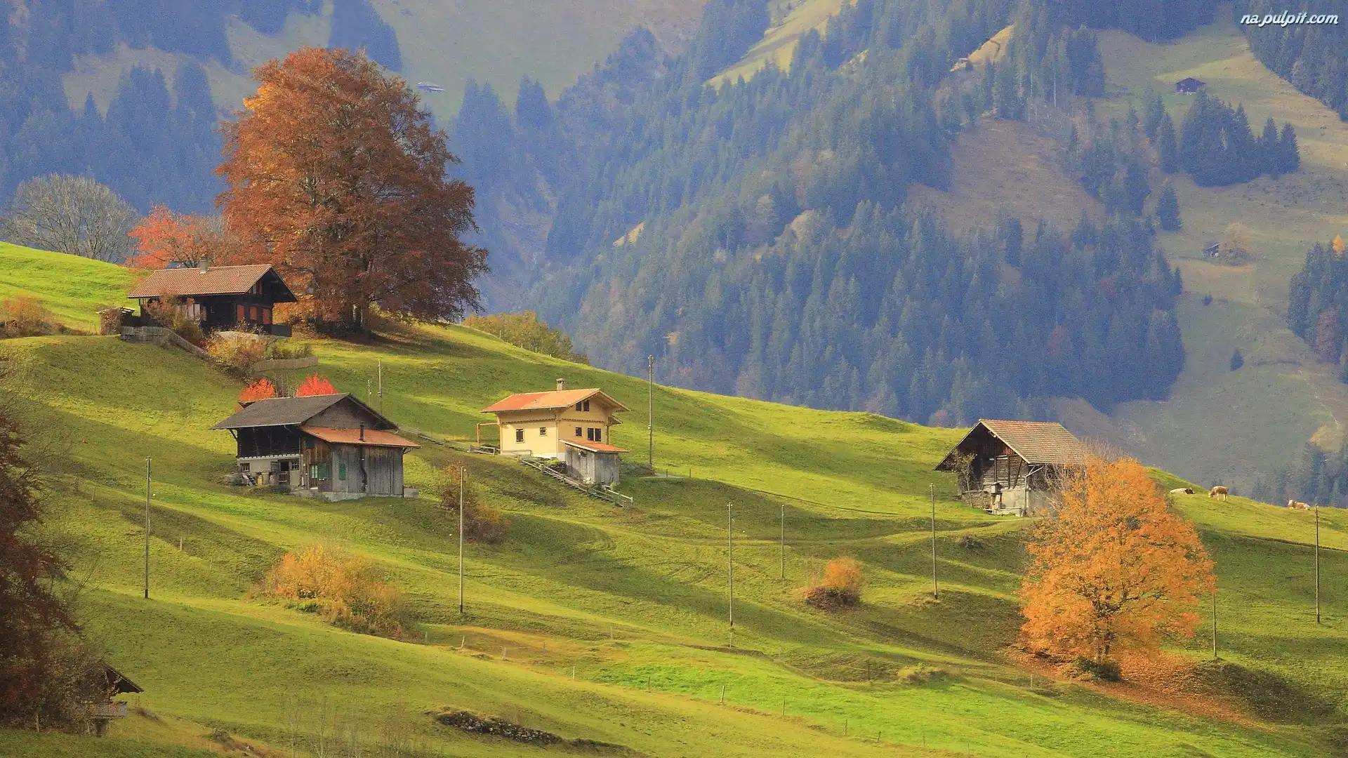 Drzewa, Góry, Domy Na Pulpit