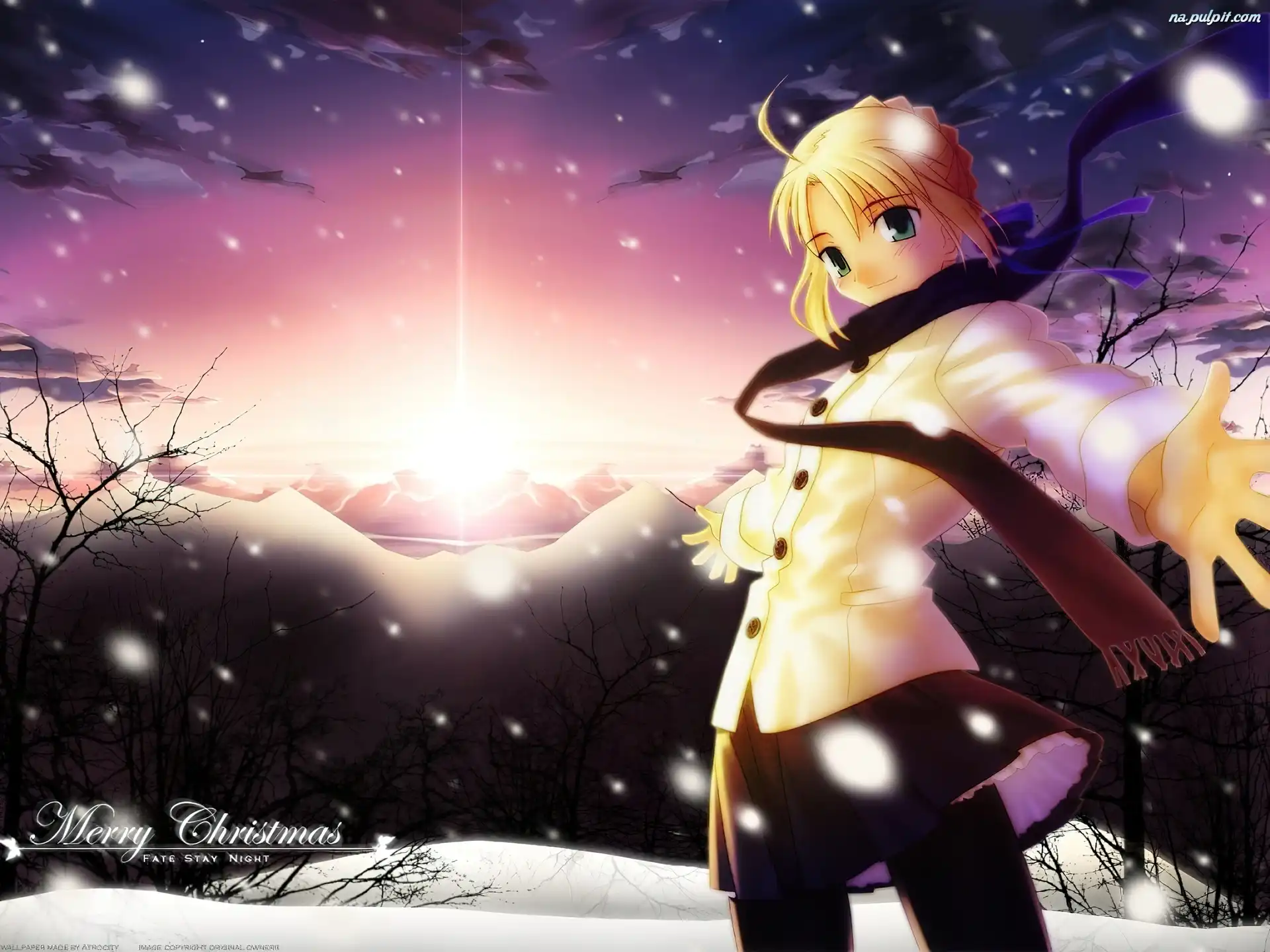 dziewczyna, góry, napis, szalik, Fate Stay Night Na Pulpit