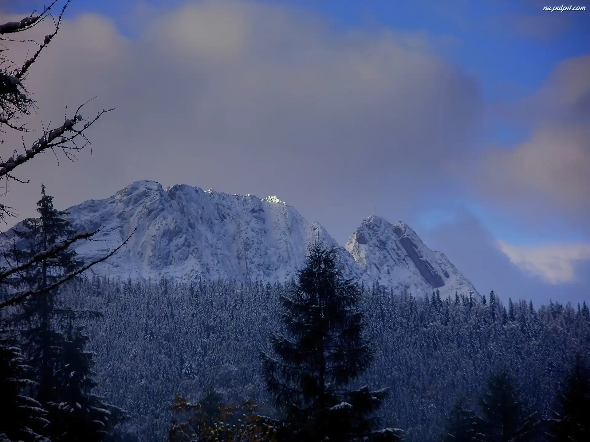 Kamienie, Góry, Jezioro Oszronione, Drzewa Zima, Drzewo Jezioro, Góry, Chmurki Plaża, Fale, Góry, Morze Góra Góra Zima, Rzeka Góra Góry, Krzewy palmy, Chmura, Góry, Niebo Góry, śnieg domki, Góry, dwa drzewa skały, Niebo