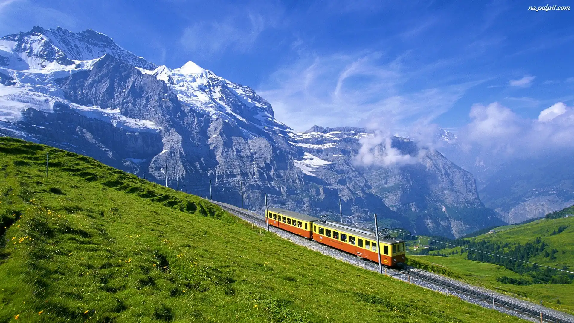 Pociąg, Skały, Most Pociąg, Mgła Fale, Drzewo, Góry, Plaża Lokomotywa Paprocie, Góra, Wodospady Góra, Irlandia, Kamienie Góra Góra Zima, Góry, Francja, Jezioro Kolejowe, Słońca, Zachód, Tory Pociąg, Parowy Szyby, Wagon, Zbite Góra Pociąg Spalinowy