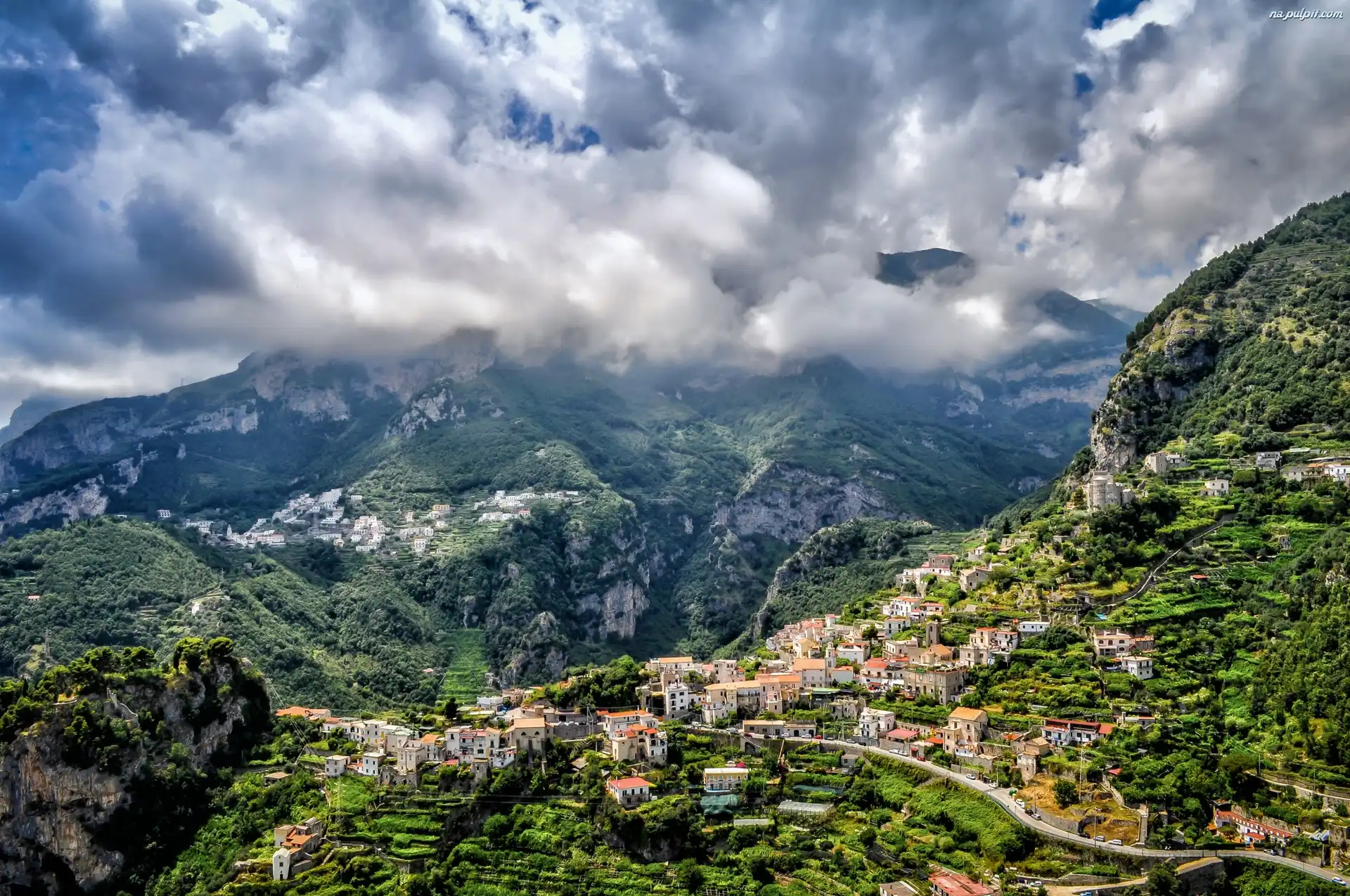 Góry, Zabudowania, Skały, Góry, Chmura Na Pulpit