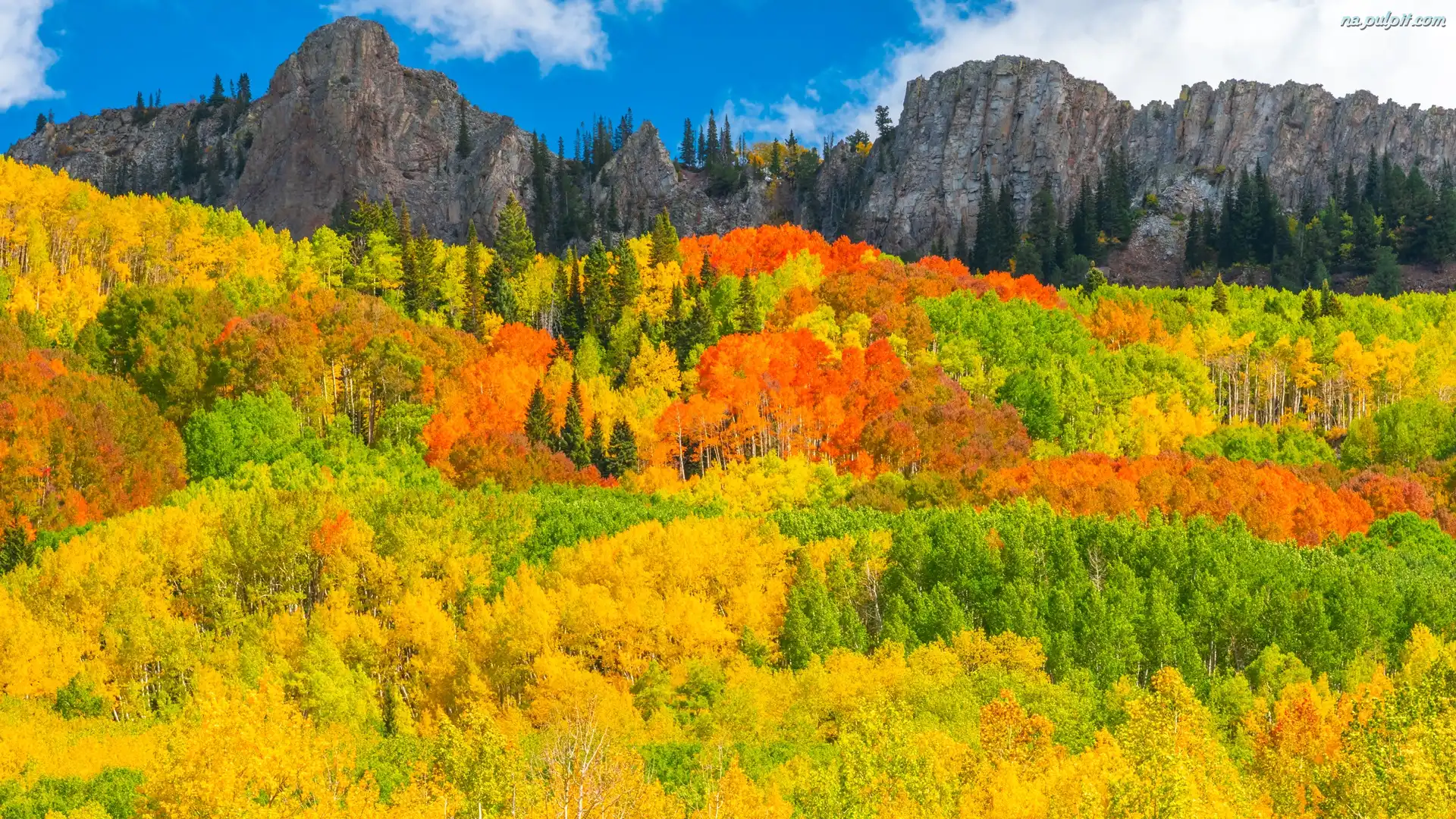 Las, Kolorado, Przełęcz, Drzewa, Jesień, Kebler Pass, Stany Zjednoczone, Góry Na Pulpit