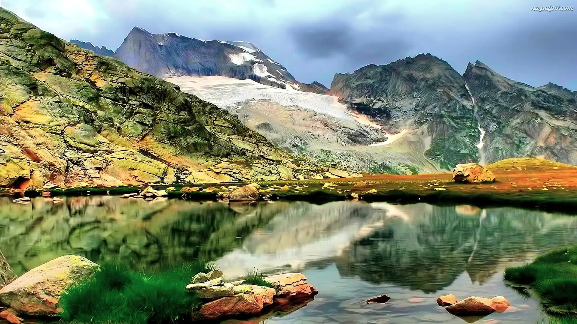 Kamienie, Góry, Jezioro Ławka, Jesień, Jezioro Polska, Morskie, Oko Jezioro, Góry, Chmurki Plaża, Fale, Góry, Morze Góra Góra Góra, Jeziora Góra Góry, Krzewy palmy, Chmura, Góry, Niebo Góry, śnieg domki, Góry, dwa drzewa skały, Niebo