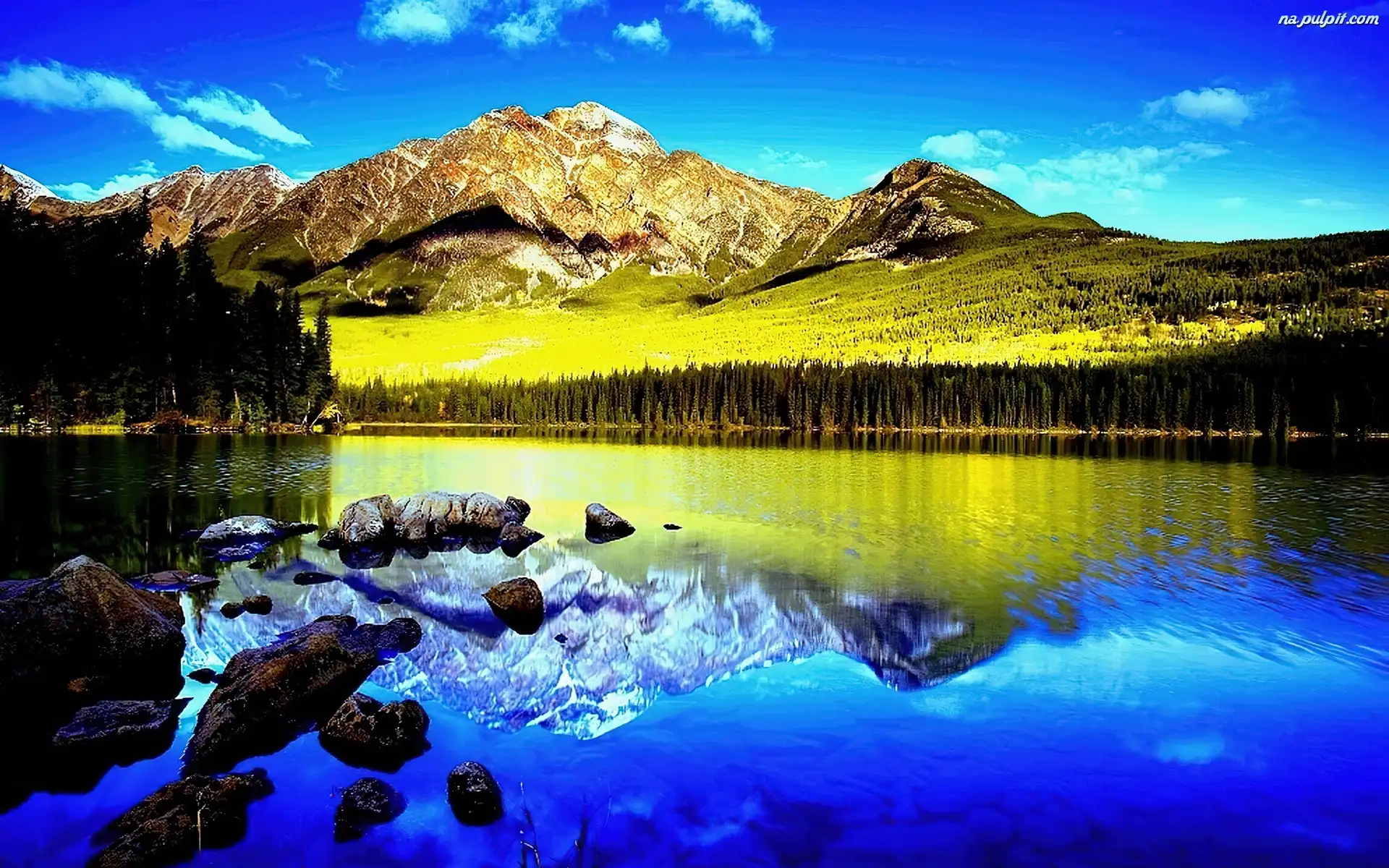 Kamienie, Góry, Jezioro Ławka, Jesień, Jezioro Polska, Morskie, Oko Jezioro, Góry, Chmurki Plaża, Fale, Góry, Morze Góra Góra Góra, Jeziora Góra Góry, Krzewy palmy, Chmura, Góry, Niebo Góry, śnieg domki, Góry, dwa drzewa skały, Niebo