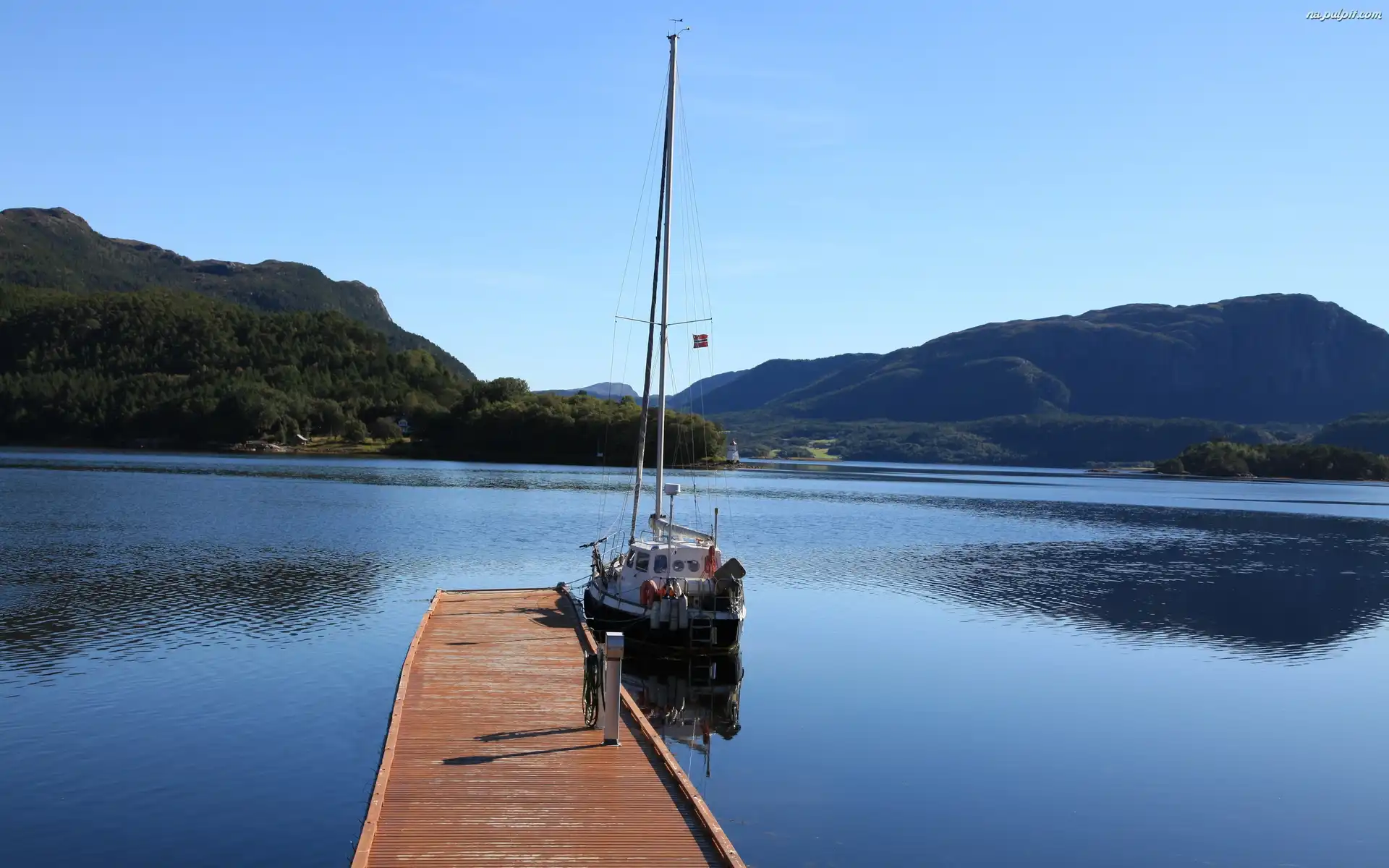 Góry, Żaglówka, Jezioro, Pomost