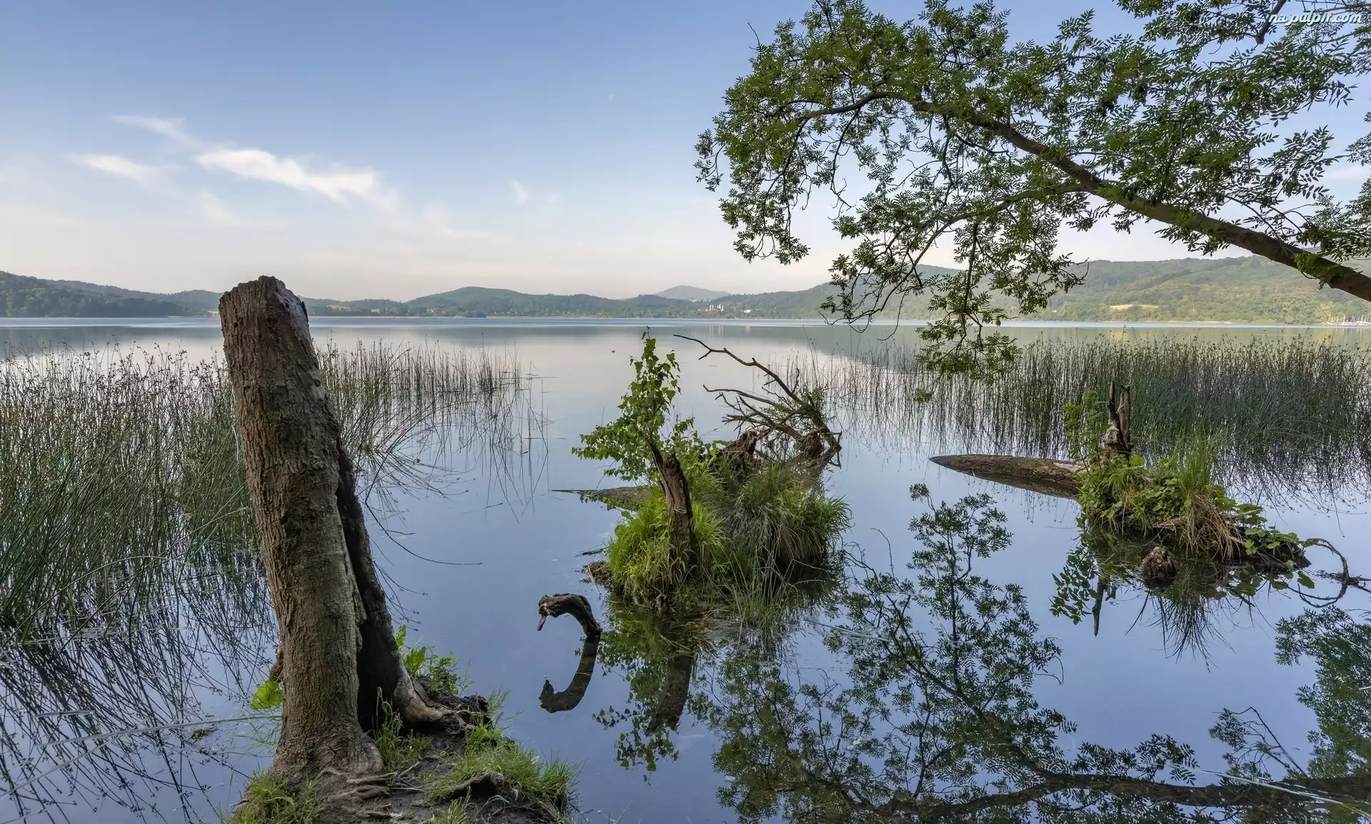 Góry, Drzewo, Jezioro, Rośliny Na Pulpit