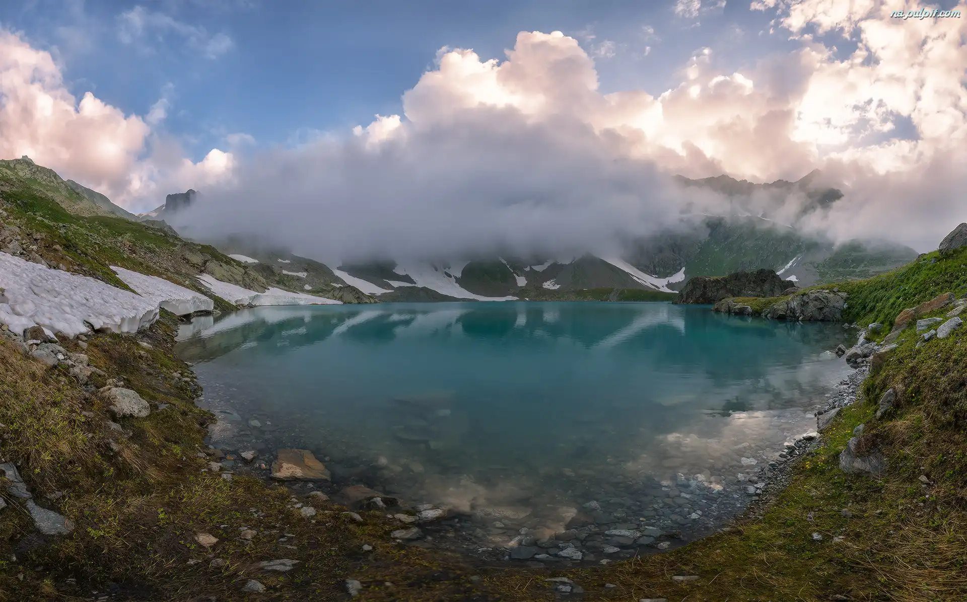 Góry, Imeretia, Gruzja, Kaukaz, Jezioro, Chmury Na Pulpit