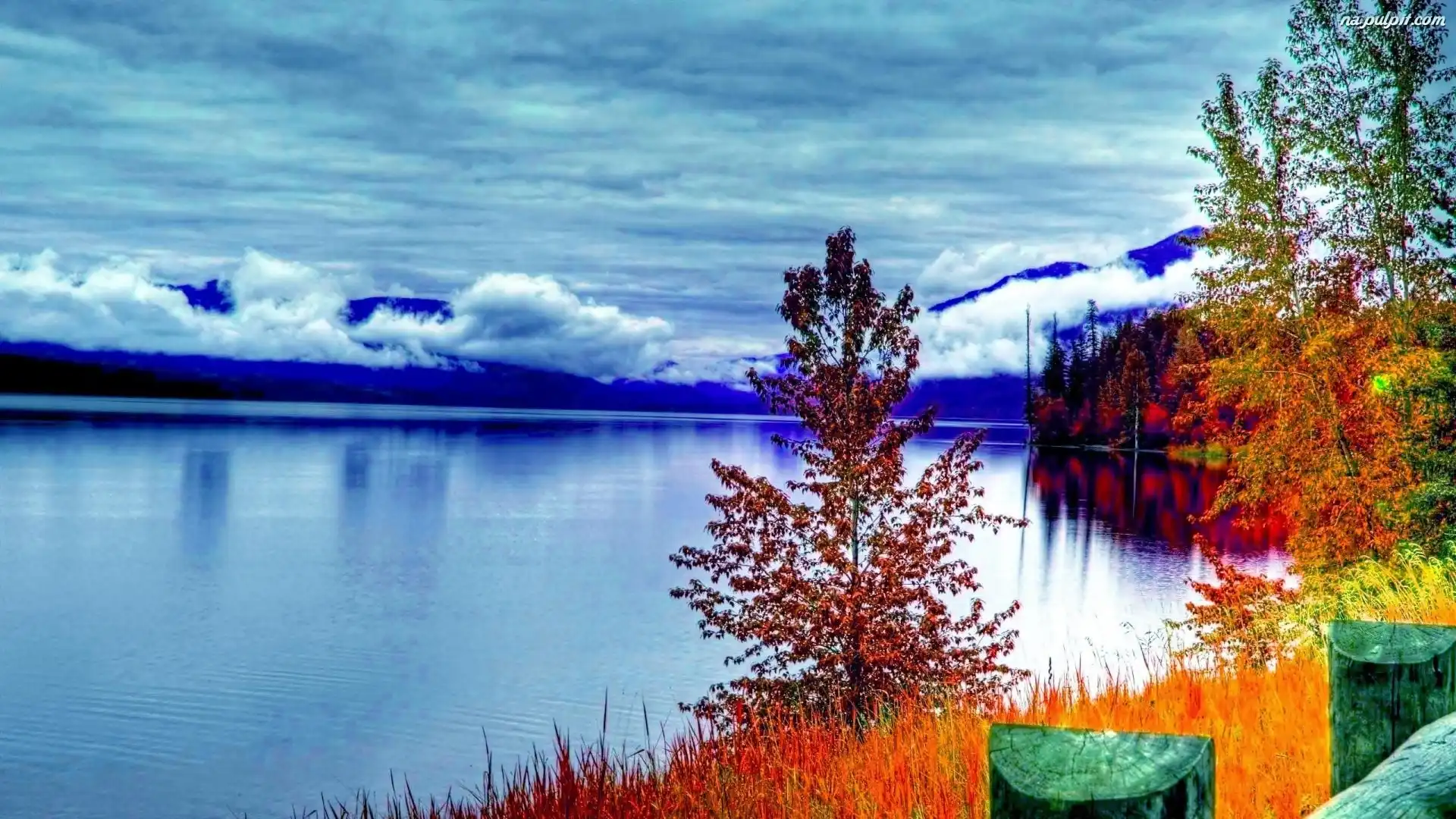 Góry, Mgła, Jesień, Lasy, Jezioro, Chmury Na Pulpit