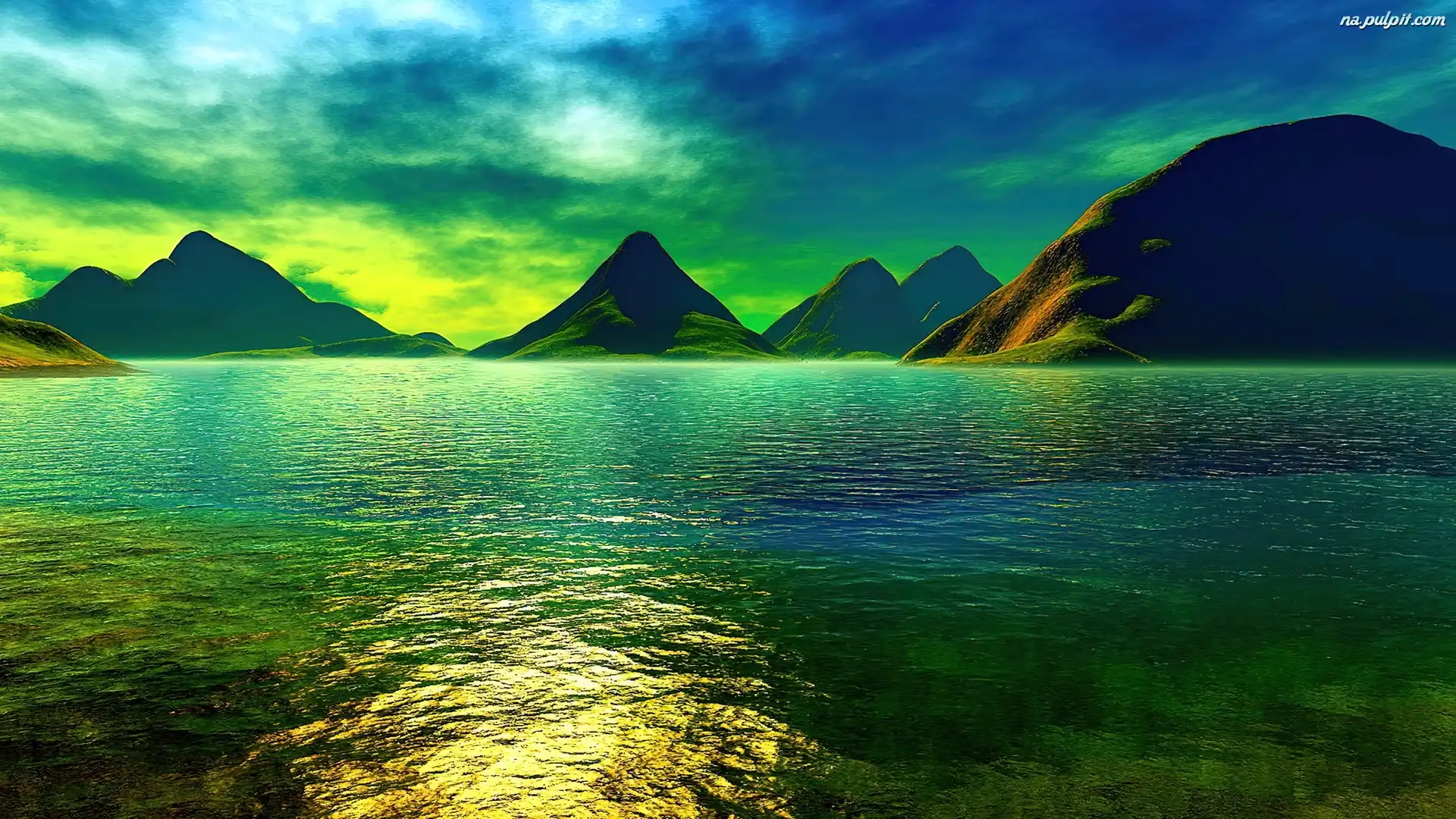 Jezioro, Góry, Niebo Na Pulpit
