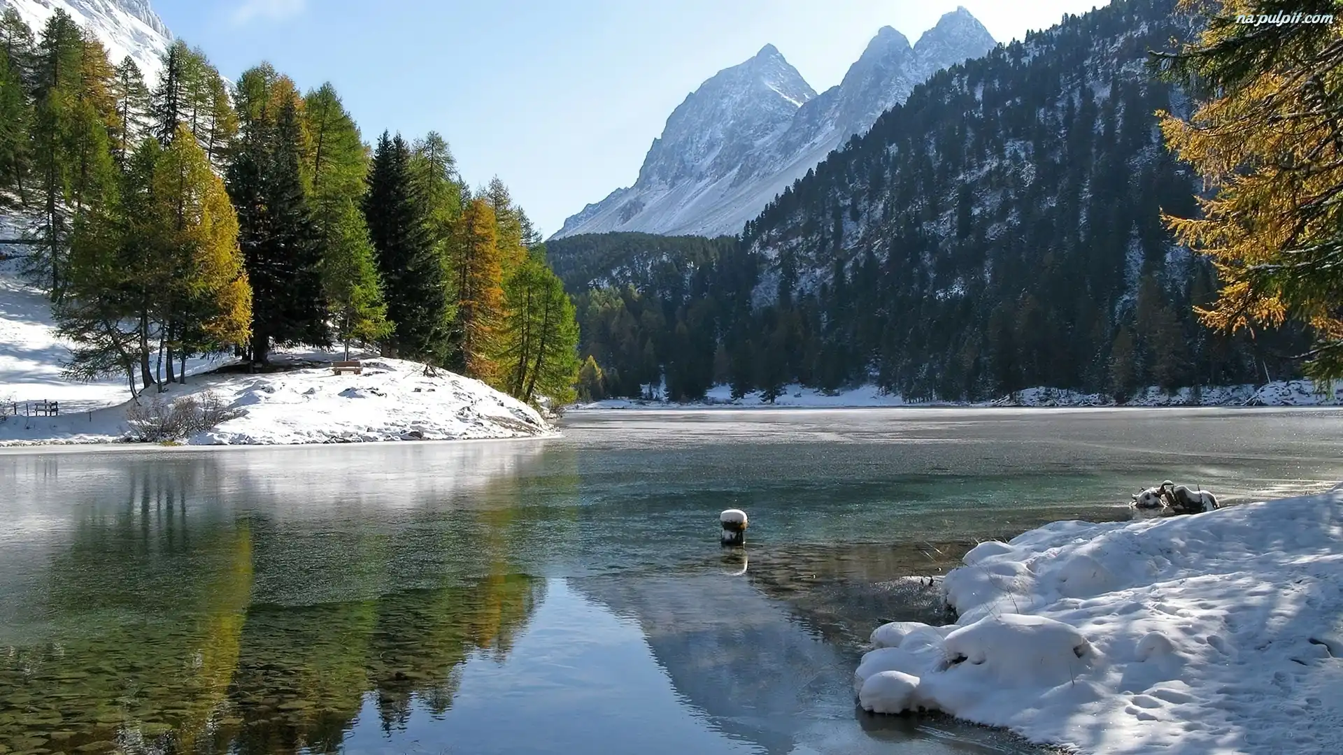 Śnieg, Jezioro, Góry, Drzewa Na Pulpit