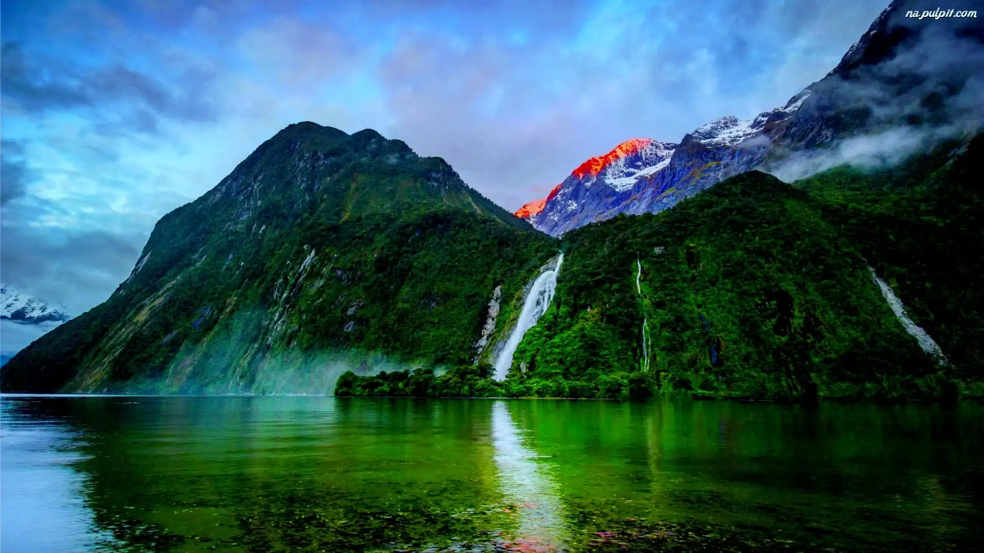 Jezioro, Góry, Wodospady Na Pulpit